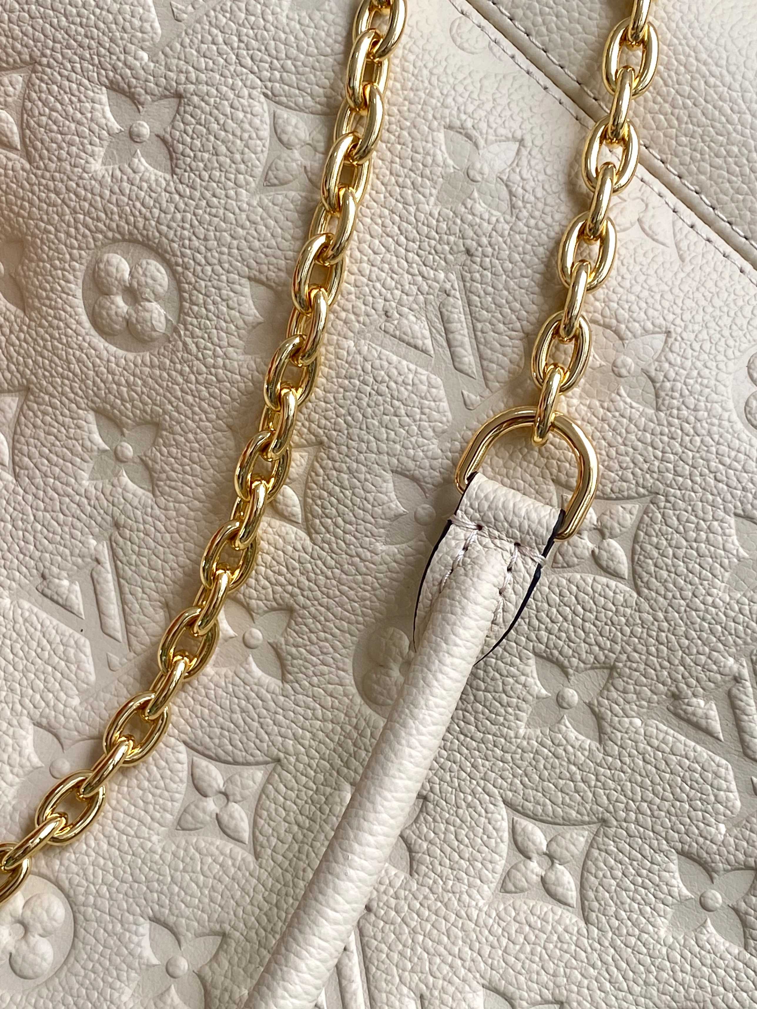 Borsa tote Anytime 42cm in pelle color crema e oro Empreinte 250725