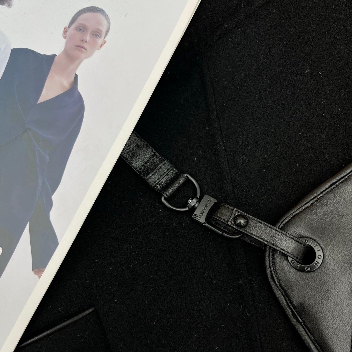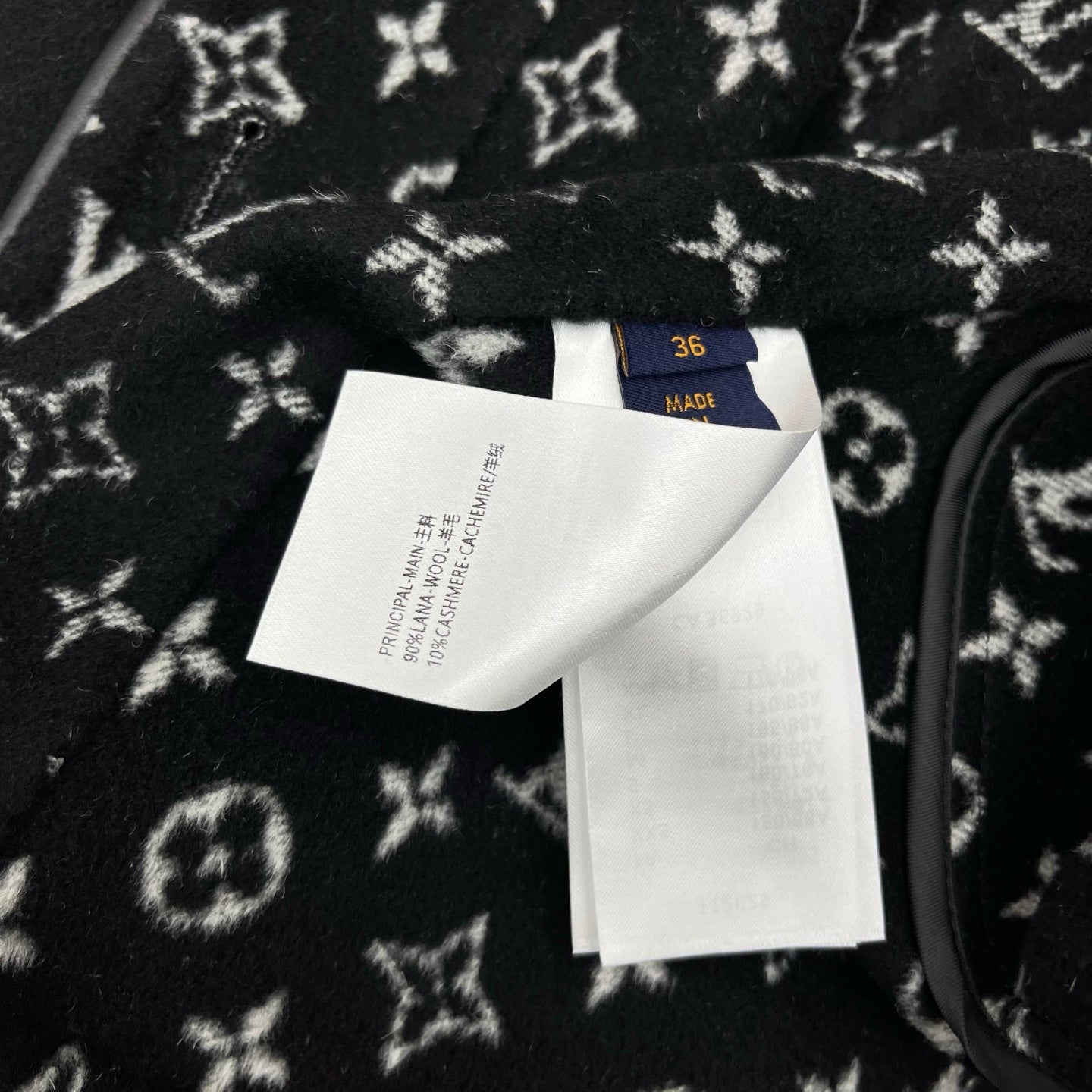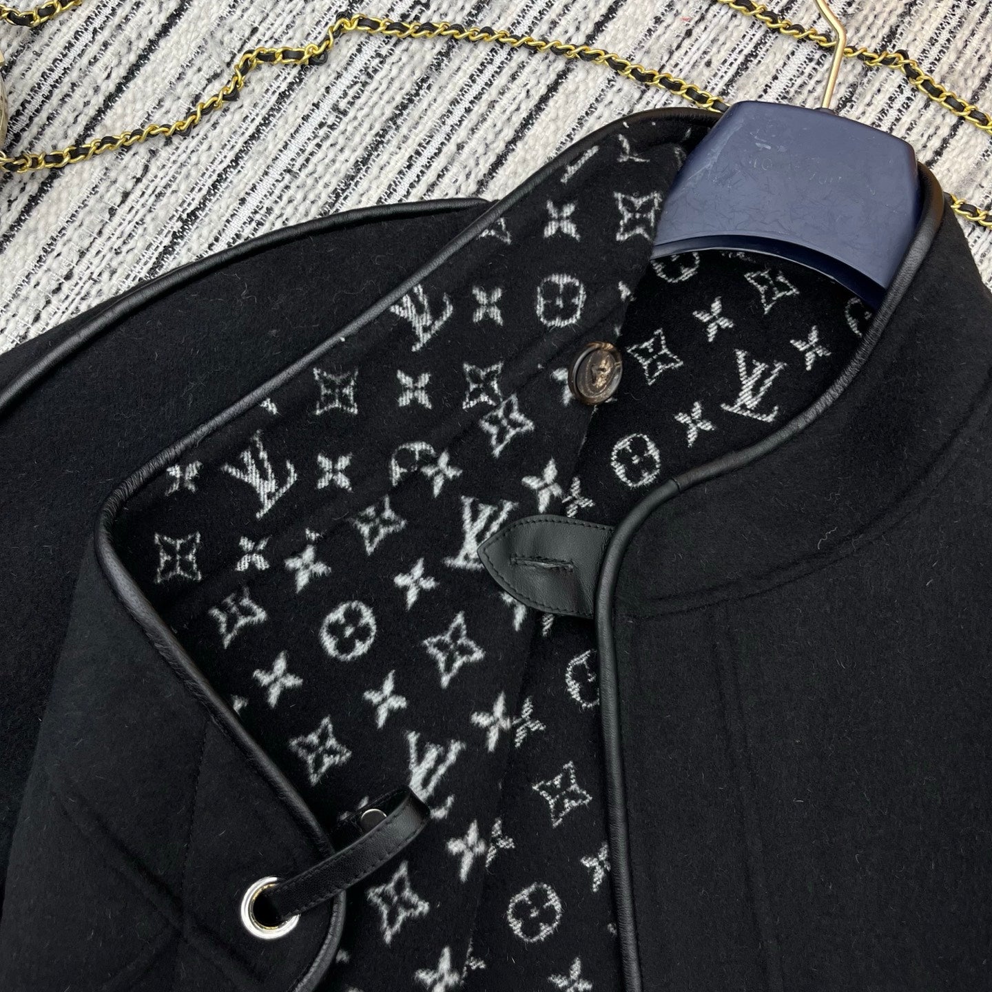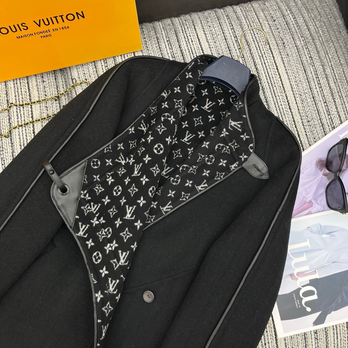 LV 25FW Double-Faced Wool Long Coat Lambskin Edge Black 311676