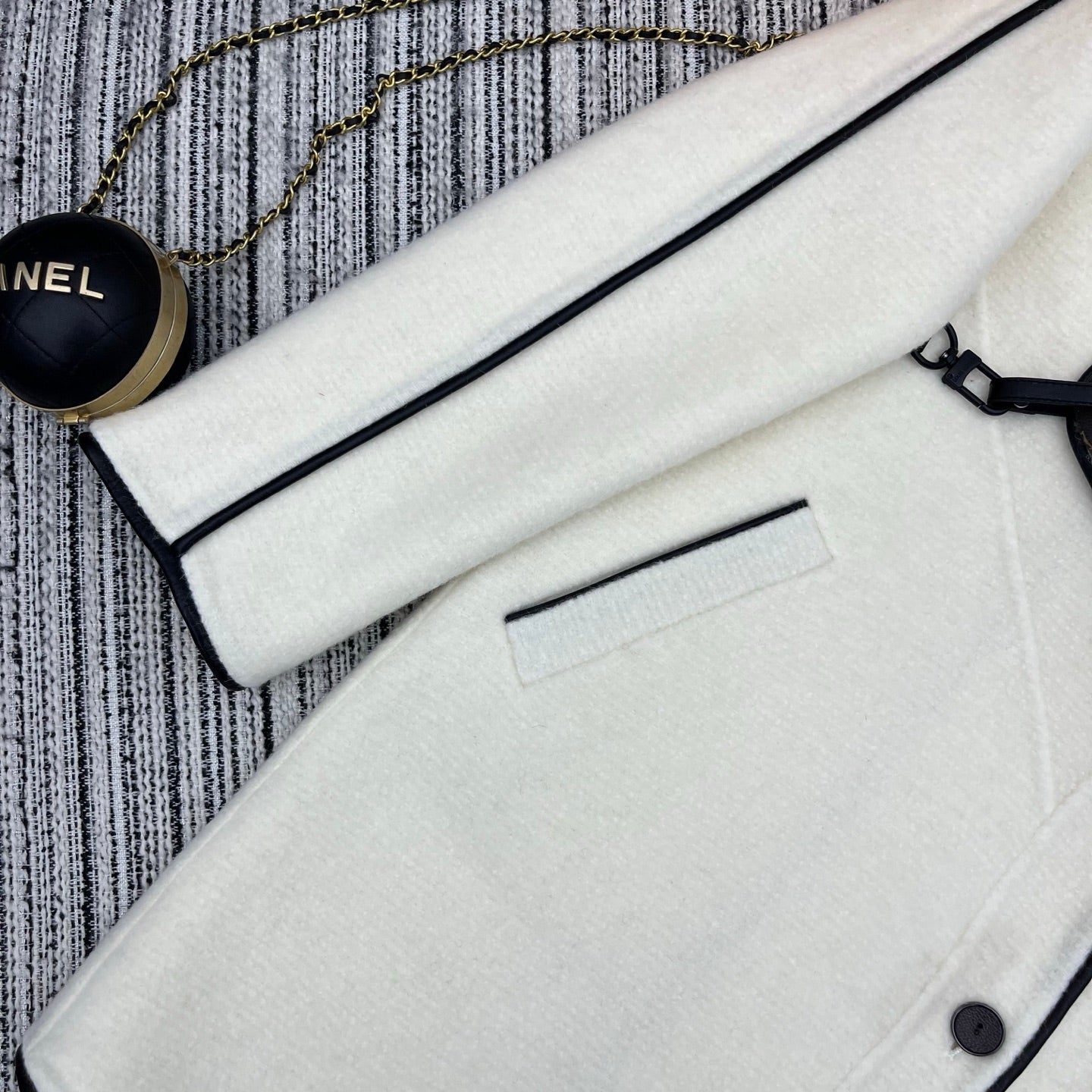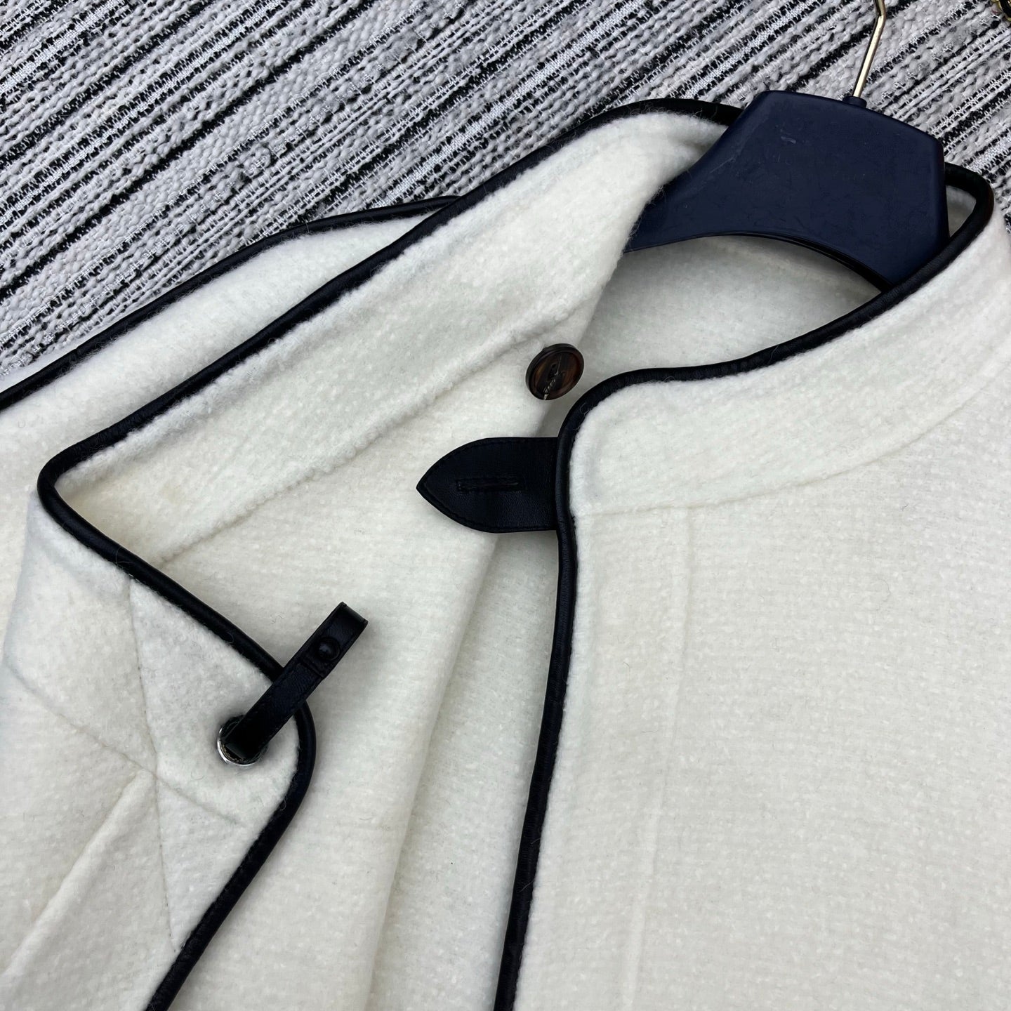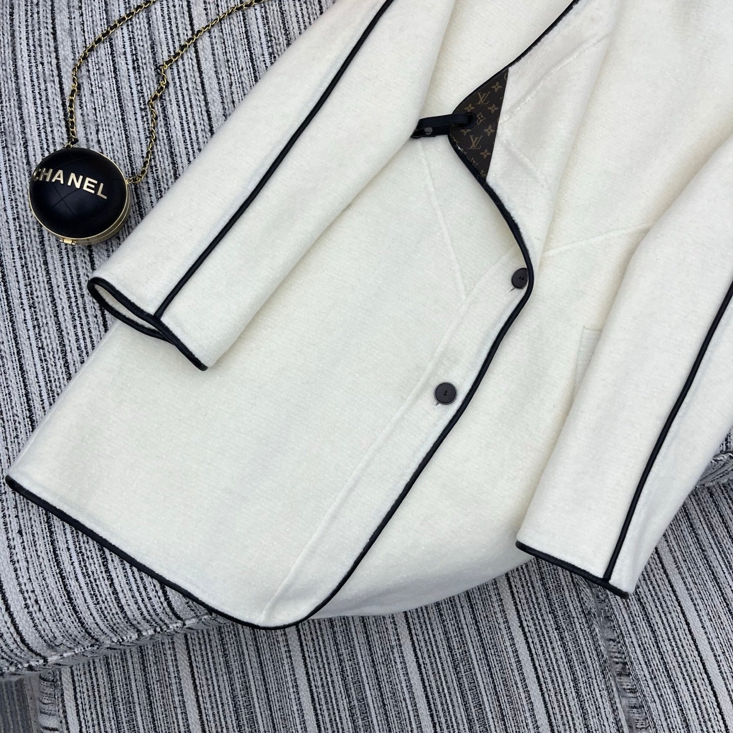 LV 25FW Double-Faced Wool Long Coat Lambskin Edge White 311684