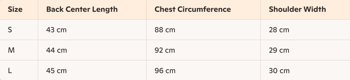 • Taglia: S, M, L