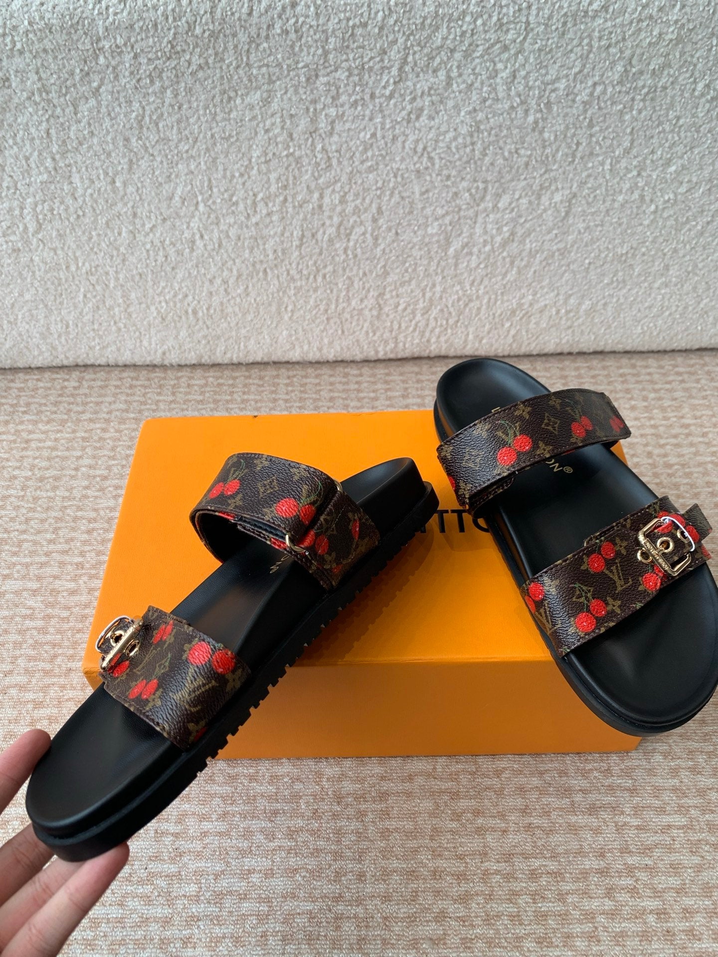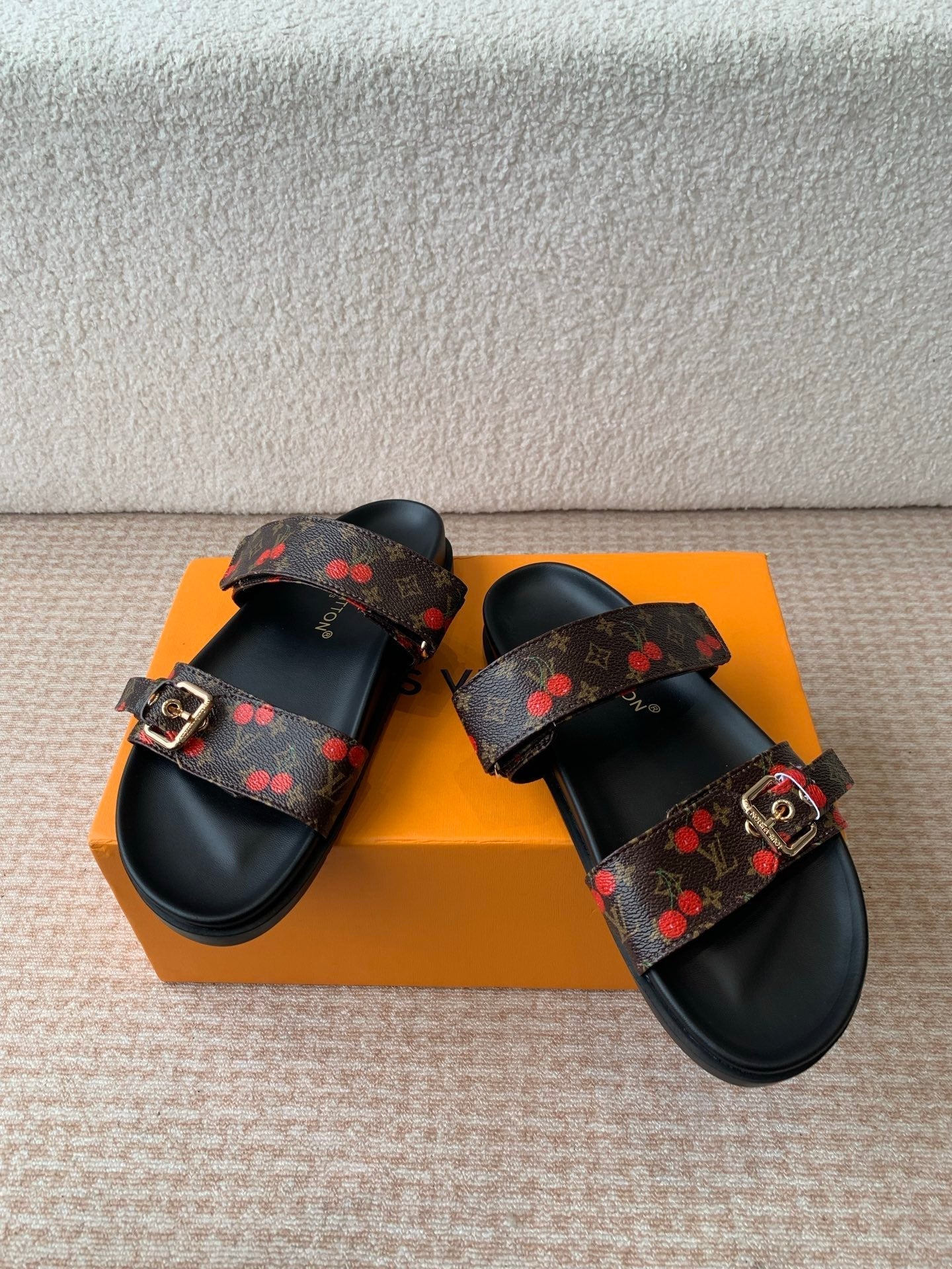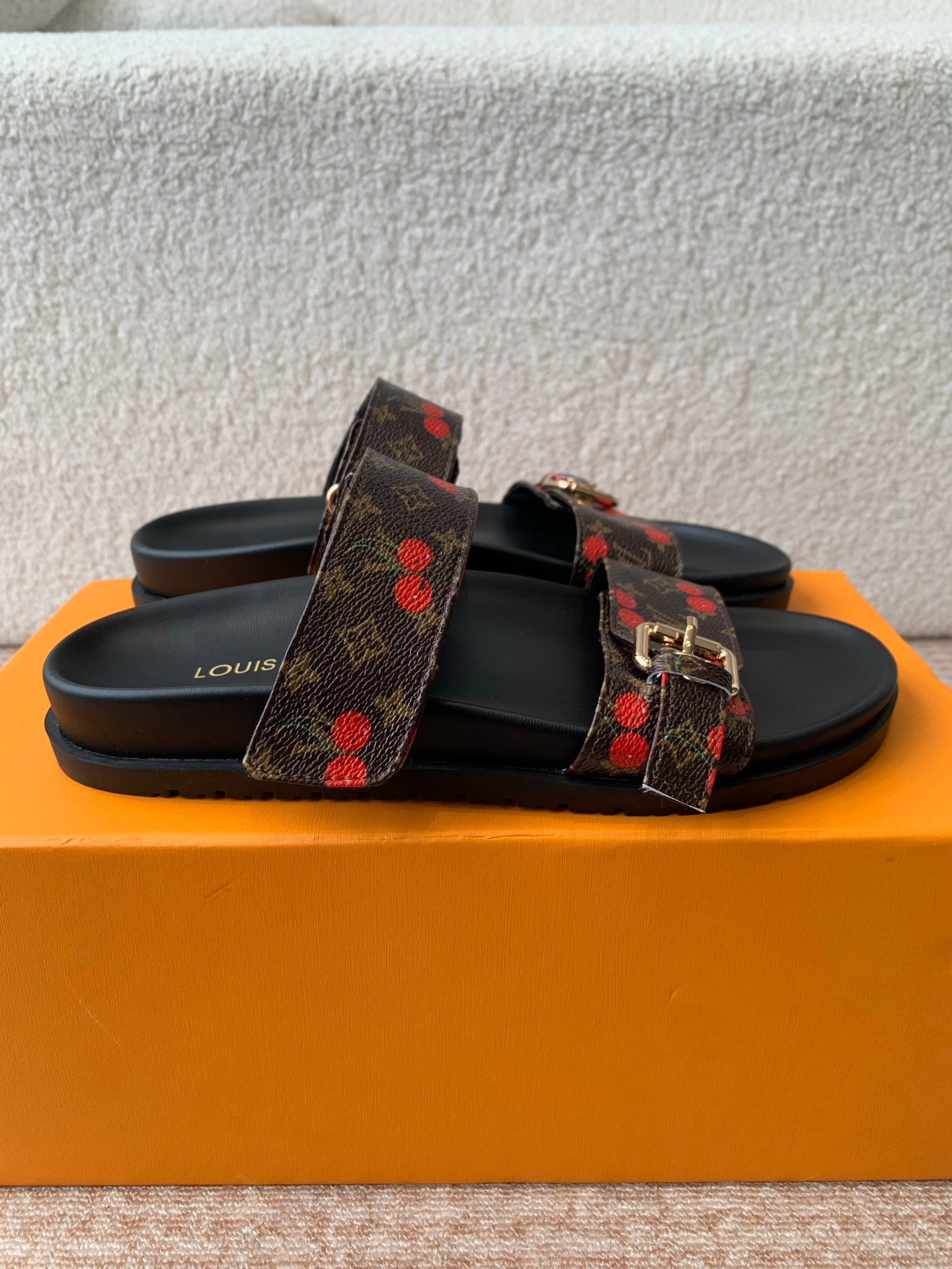 Bom Dia Flat Comfort Mule LV x TM in pelle di pecora marrone con motivo ciliegia 319378