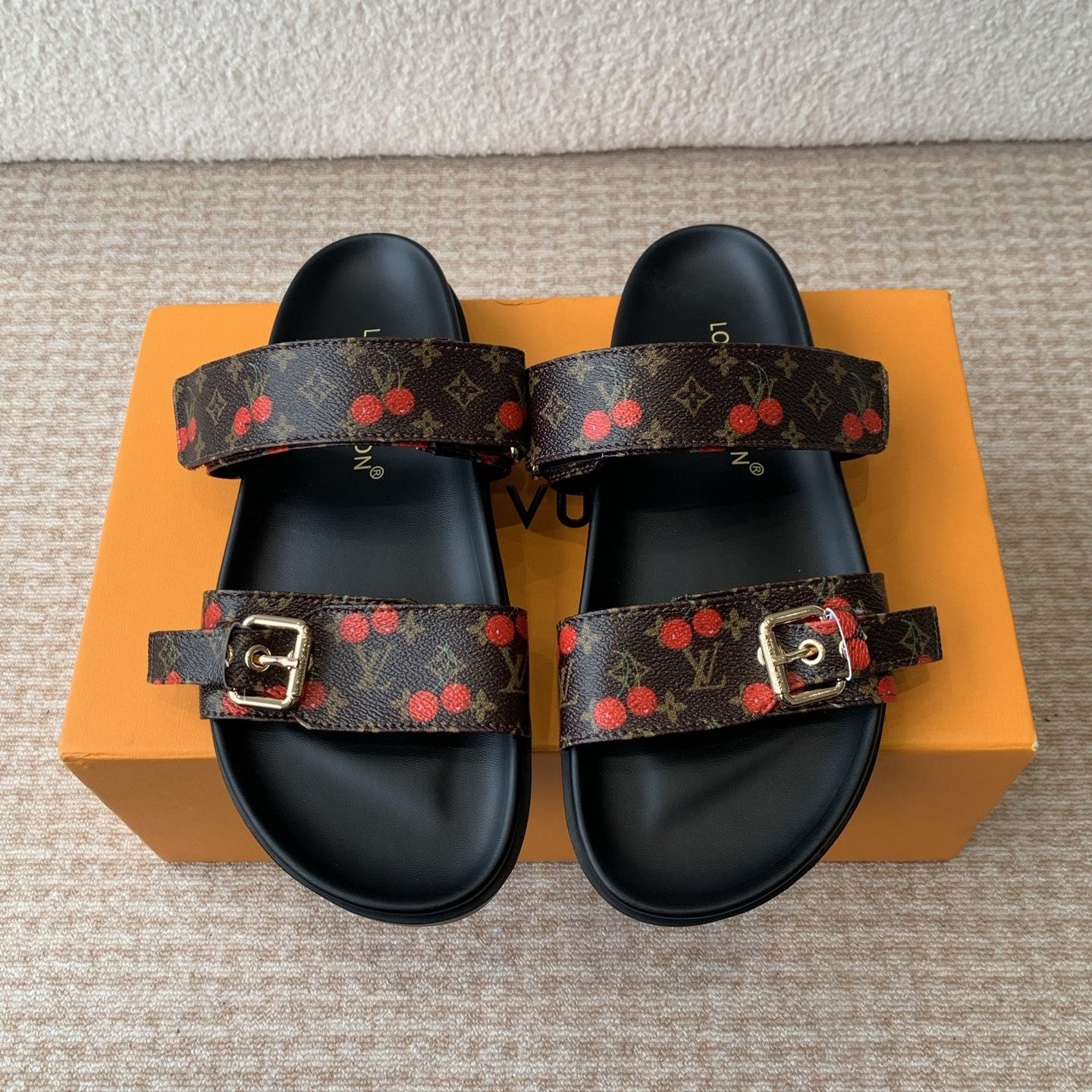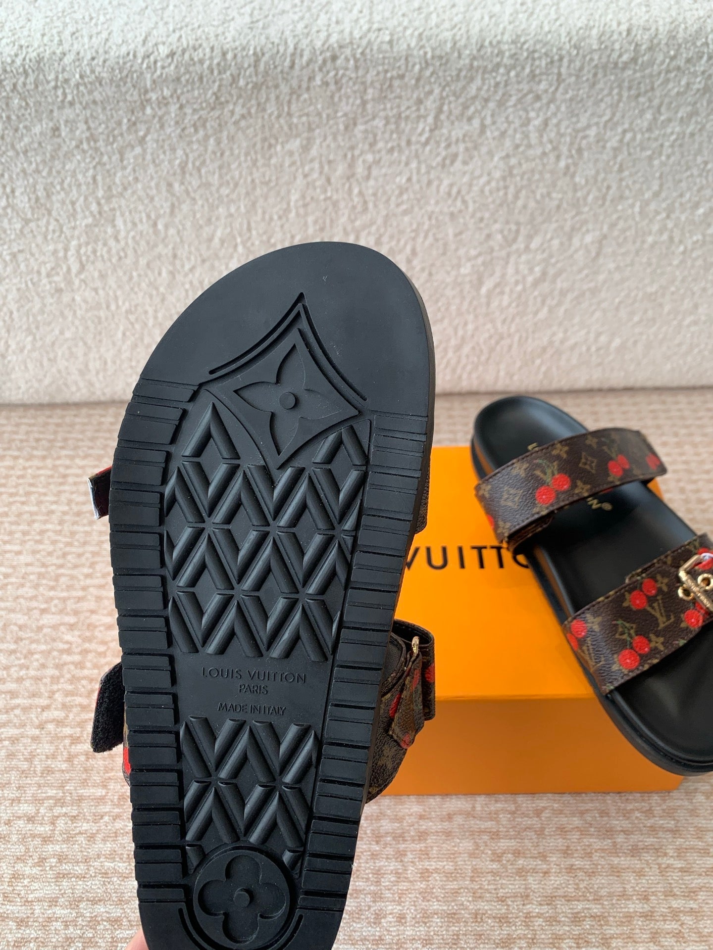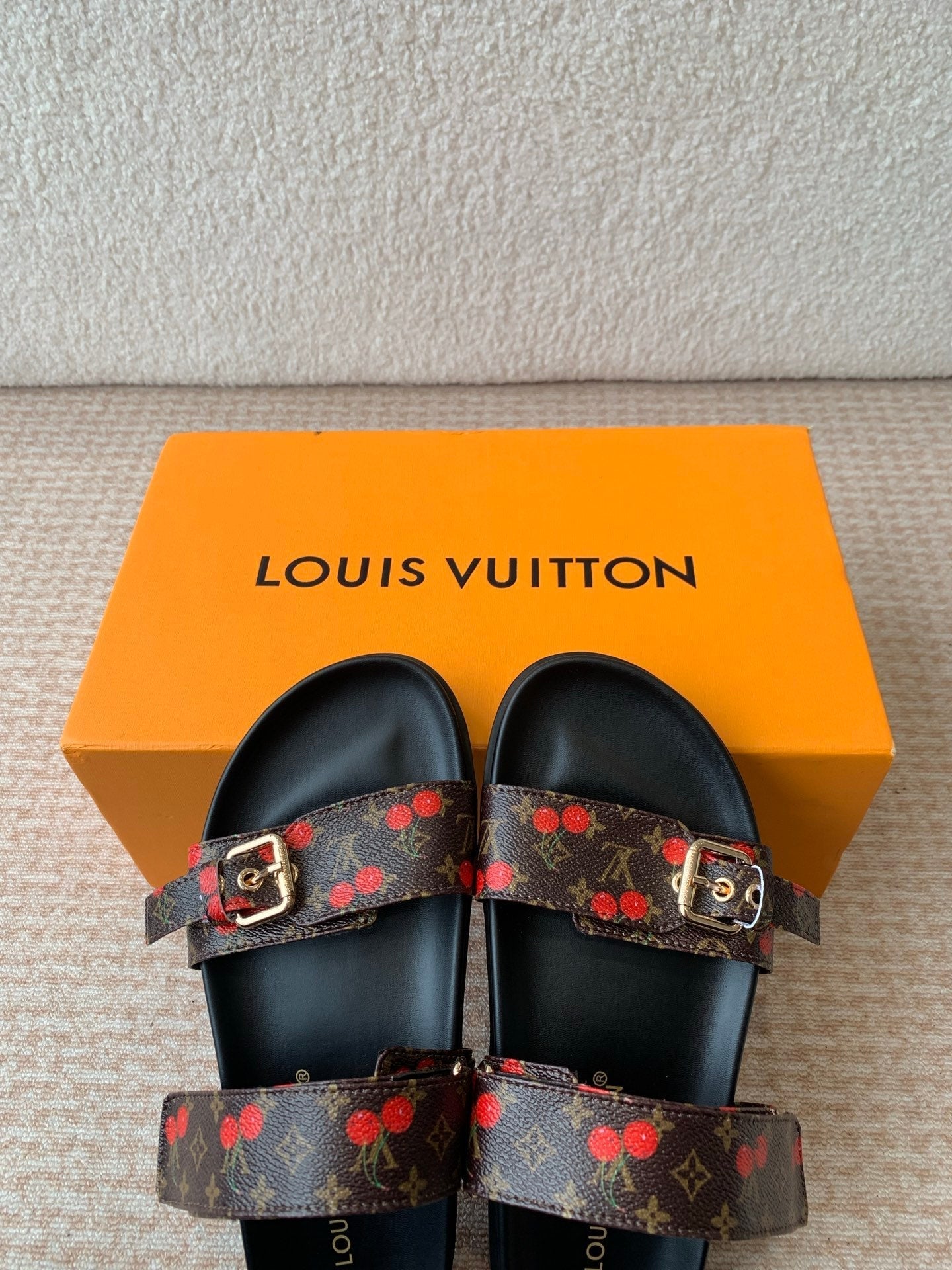 Bom Dia Flat Comfort Mule LV x TM in pelle di pecora marrone con motivo ciliegia 319378