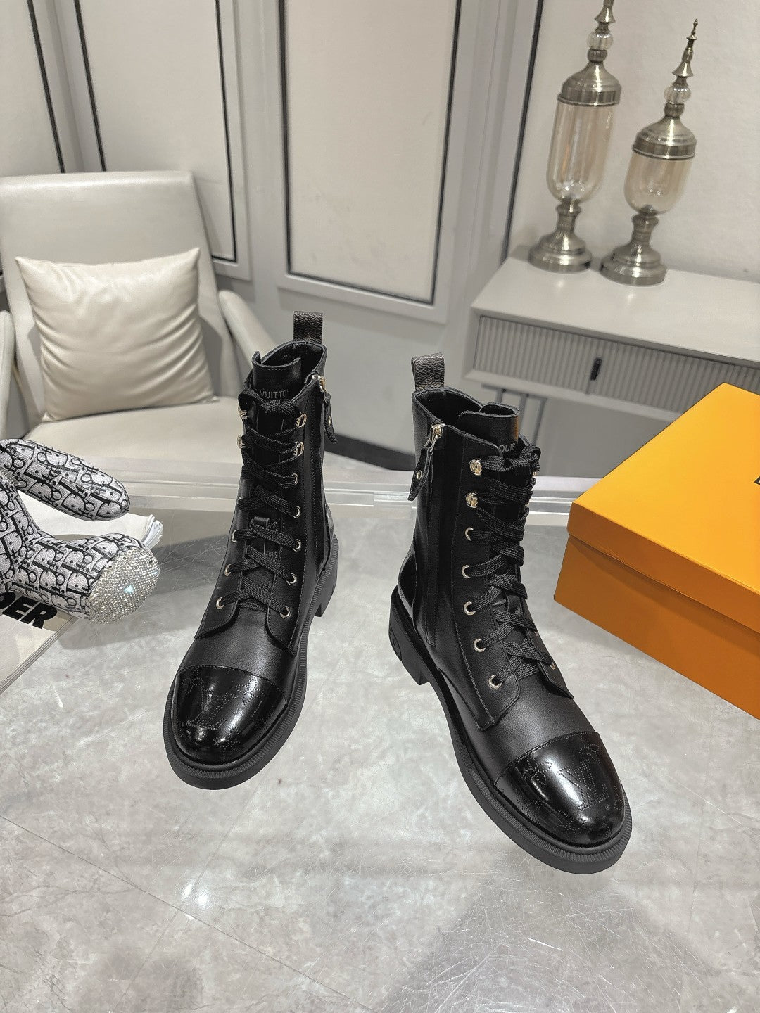 Stivali LV Citizen Flat Ranger in pelle di vacchetta nera