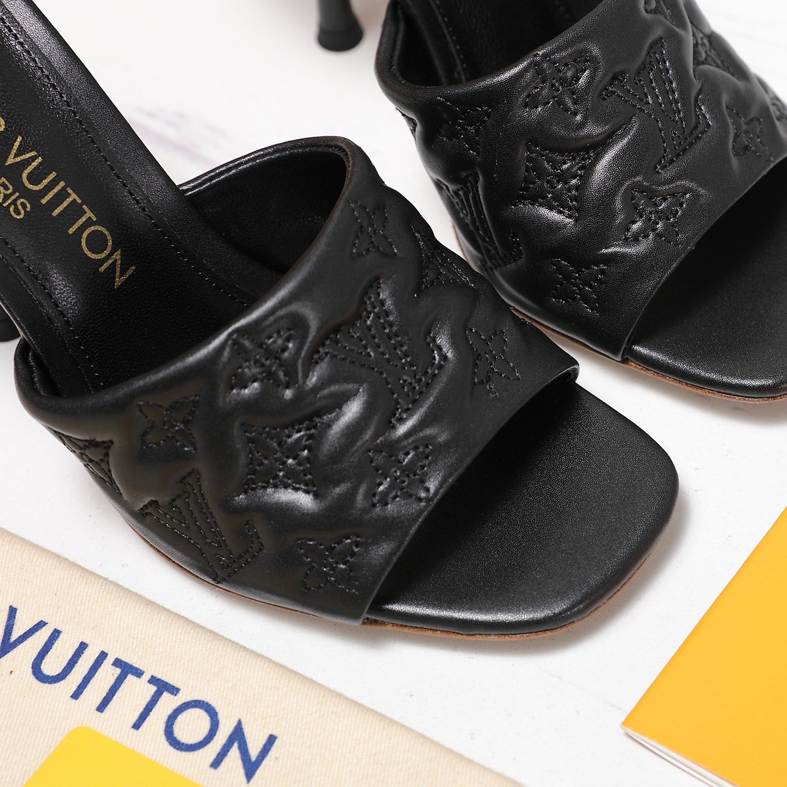 LV Revival Mule 90mm Nero Monogramma-Pelle di Agnello in Rilievo 456147