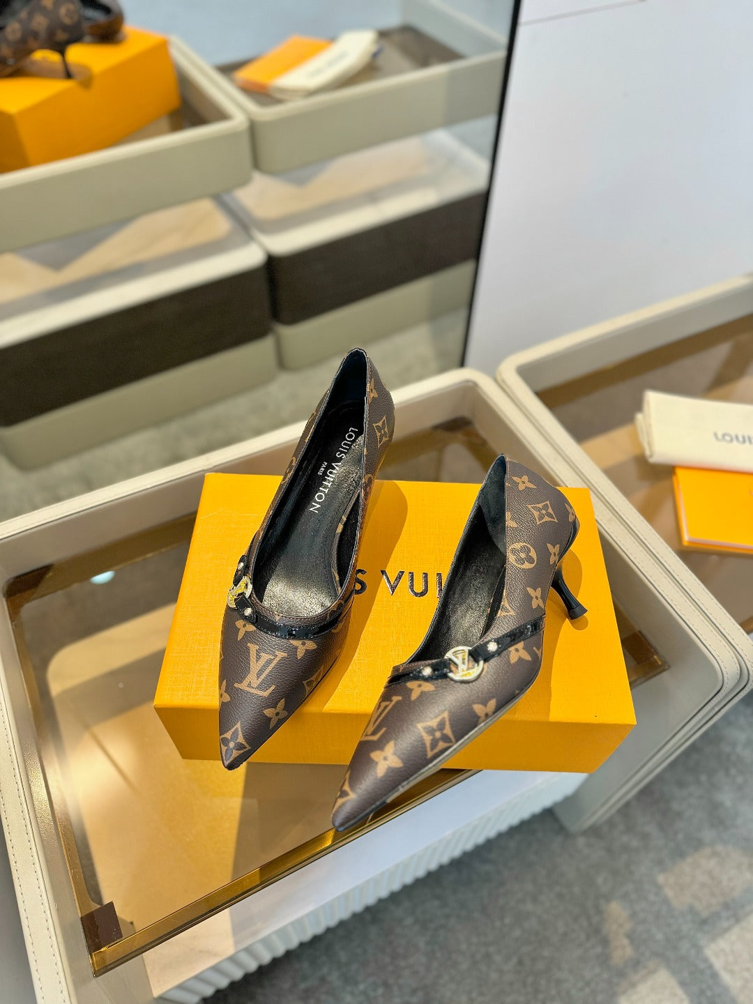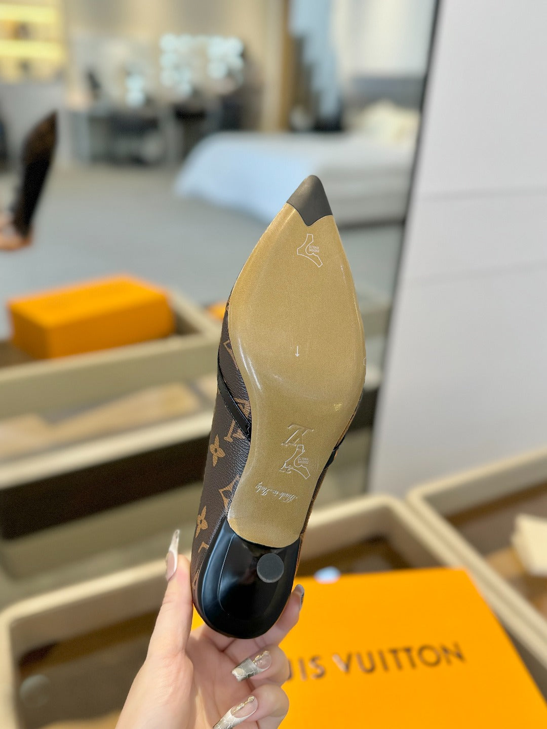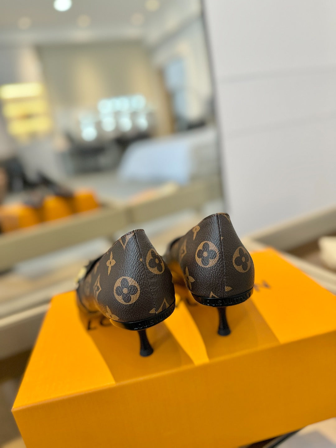 6AM 5,5 cm Scarpe con tacco in tela monogramma marrone e pelle verniciata 241203