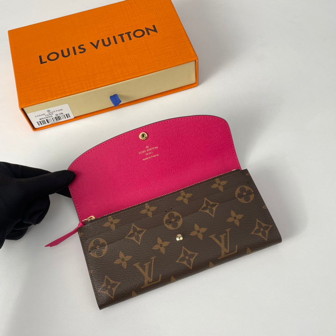 Portafoglio LV M60696 Emilie in tela monogramma marrone prugna-rosso 221663