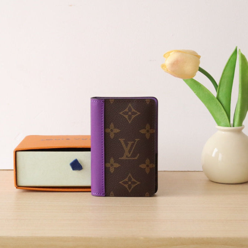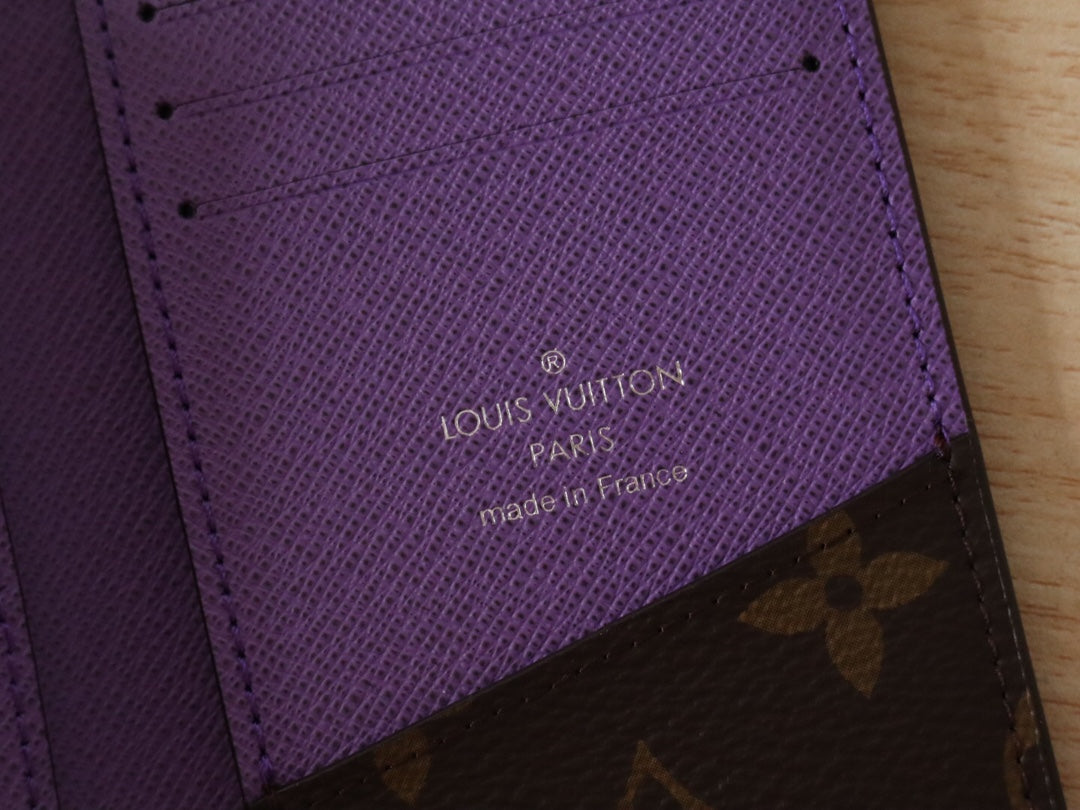 Portafoglio porta carte LV in tela monogramma viola e pelle di mucca 224114