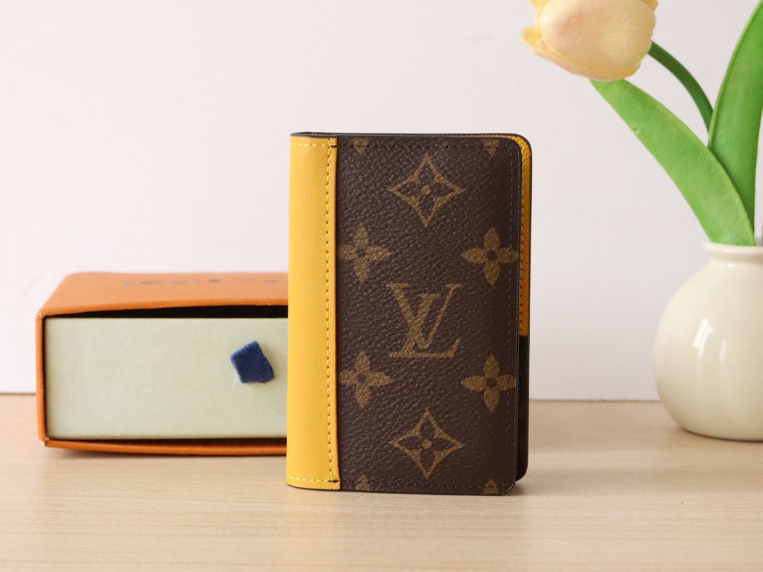 Portafoglio porta carte LV in tela monogramma gialla e pelle di mucca 224113