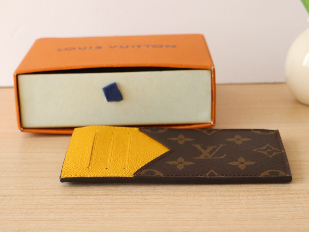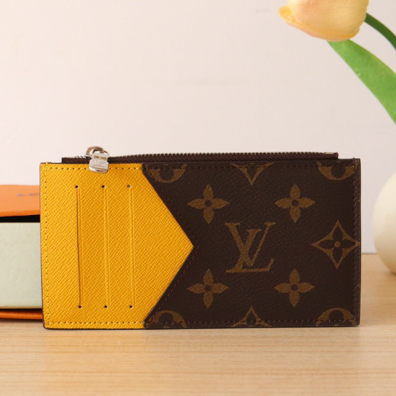Porta carte con cerniera LV in tela monogramma gialla e pelle di vitello 224123