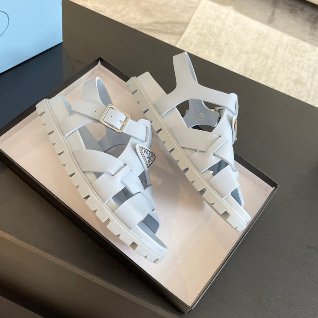 SANDALI IN GOMMA INCROCIATI PRA IN PELLE DI VITELLO BIANCA