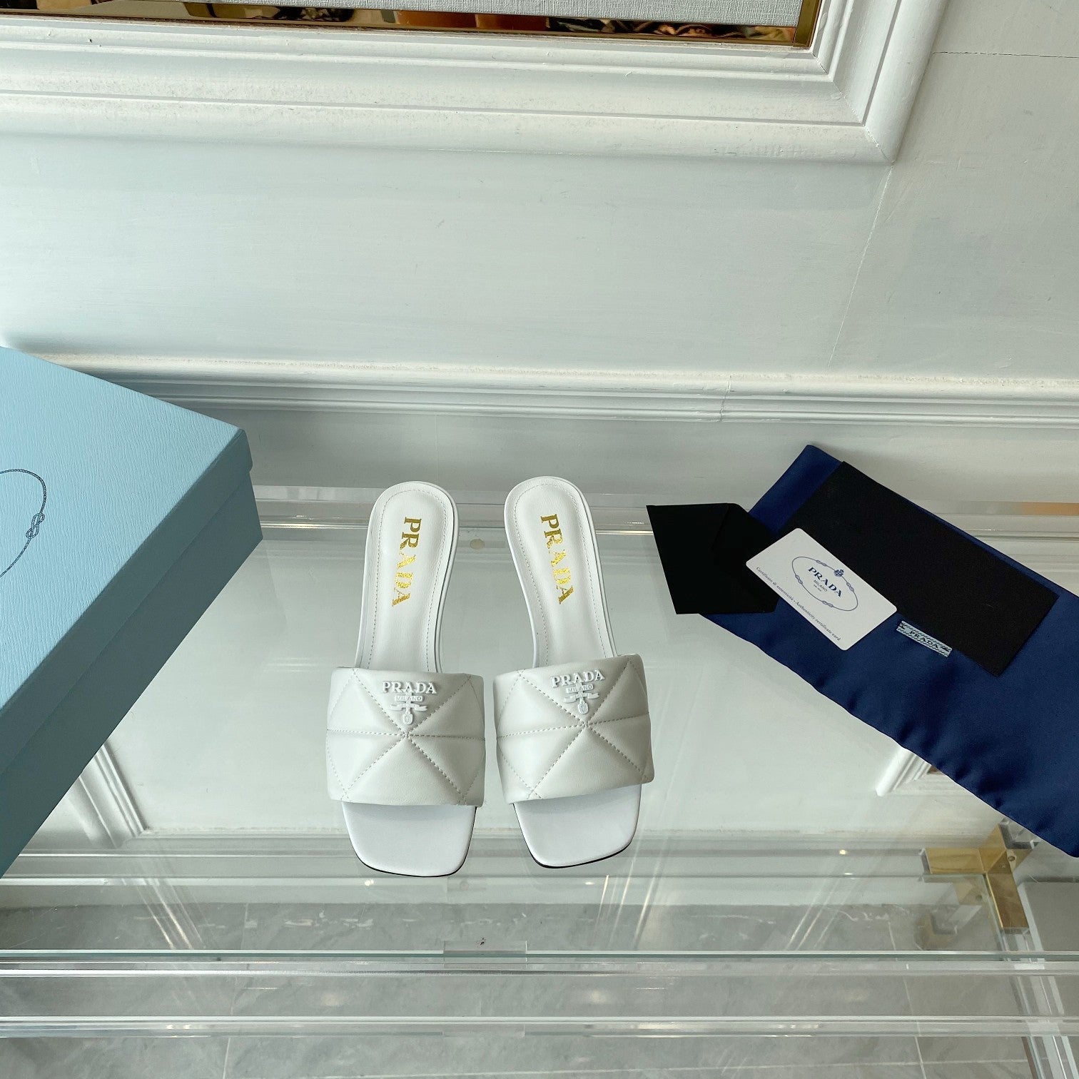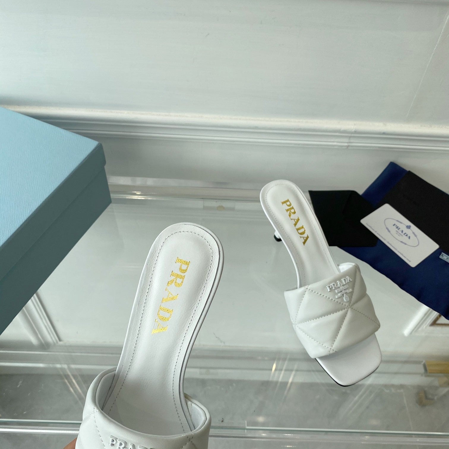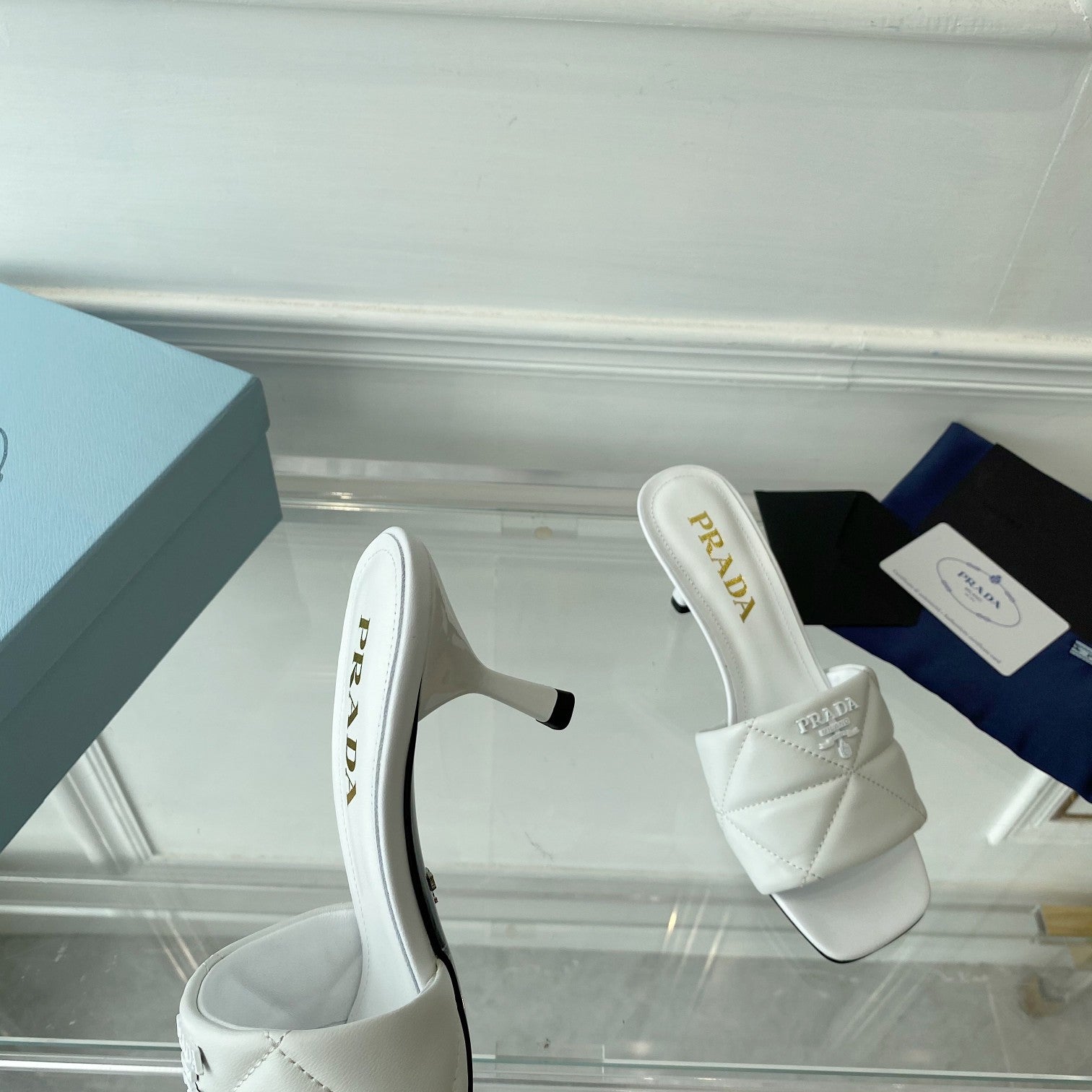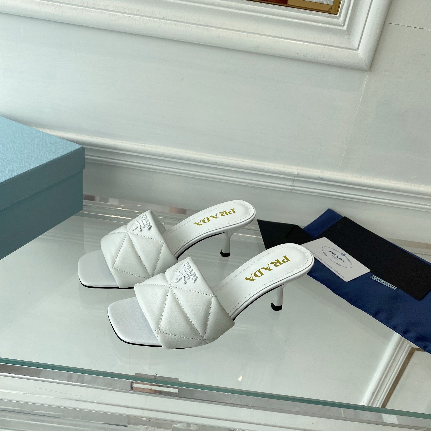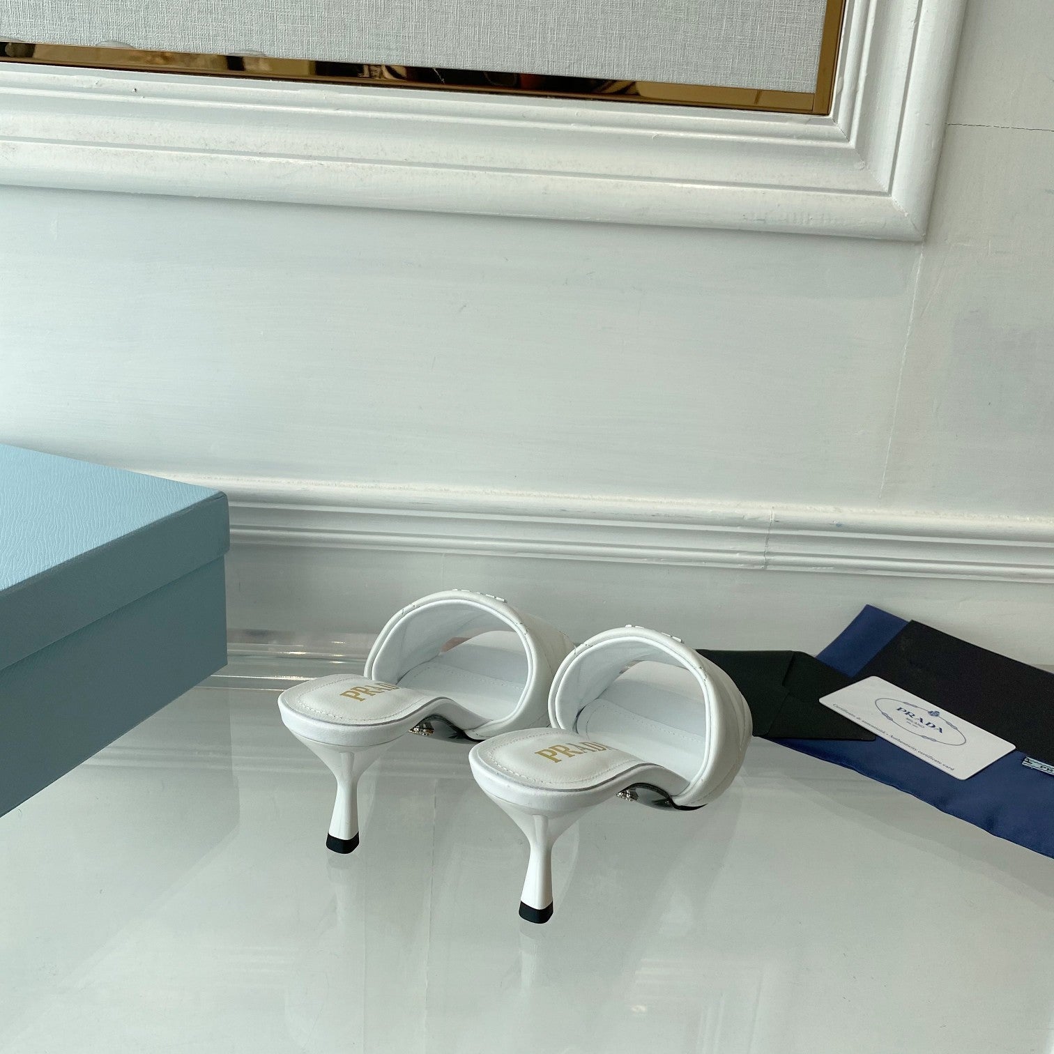 SANDALI CON TACCO ALTO TRAPUNTATI PRA 65 IN PELLE DI AGNELLO BIANCA