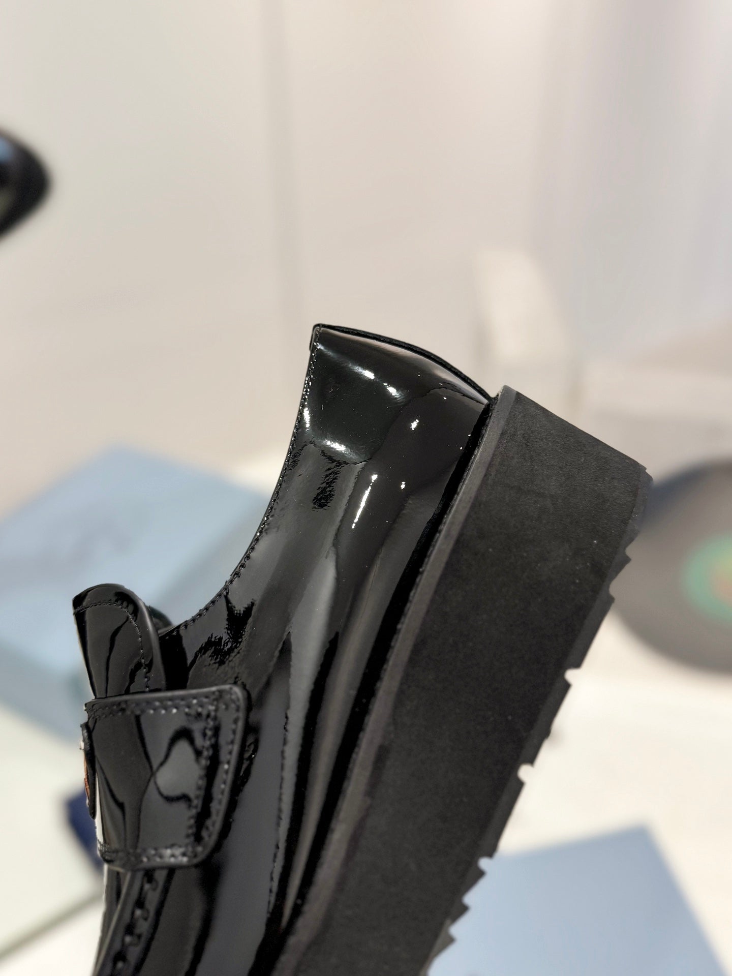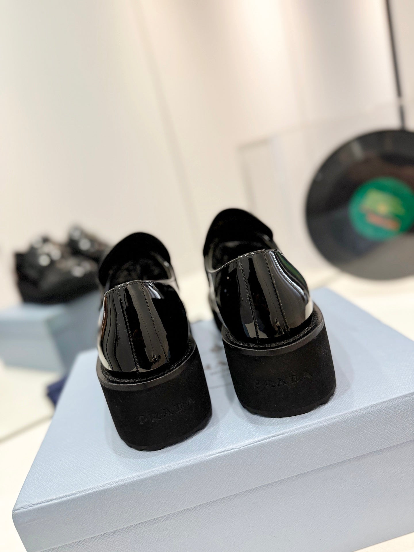 MOCASSINI PRA SPAZZOLATI IN PELLE DI AGNELLO NERA LUCIDA