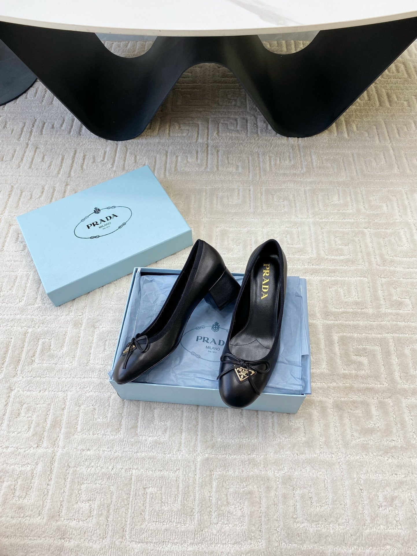 BALLERINA CON LOGO TRIANGOLARE E FIOCCO IN PELLE DI VITELLO NERA
