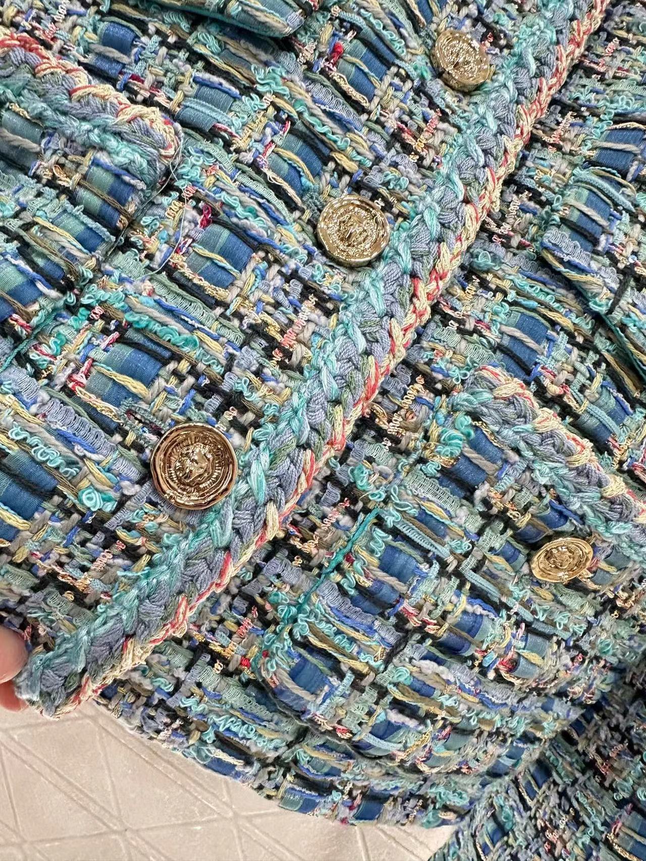 CC 25 Giacca Cardigan Blu Cotone Seta Misto Lana