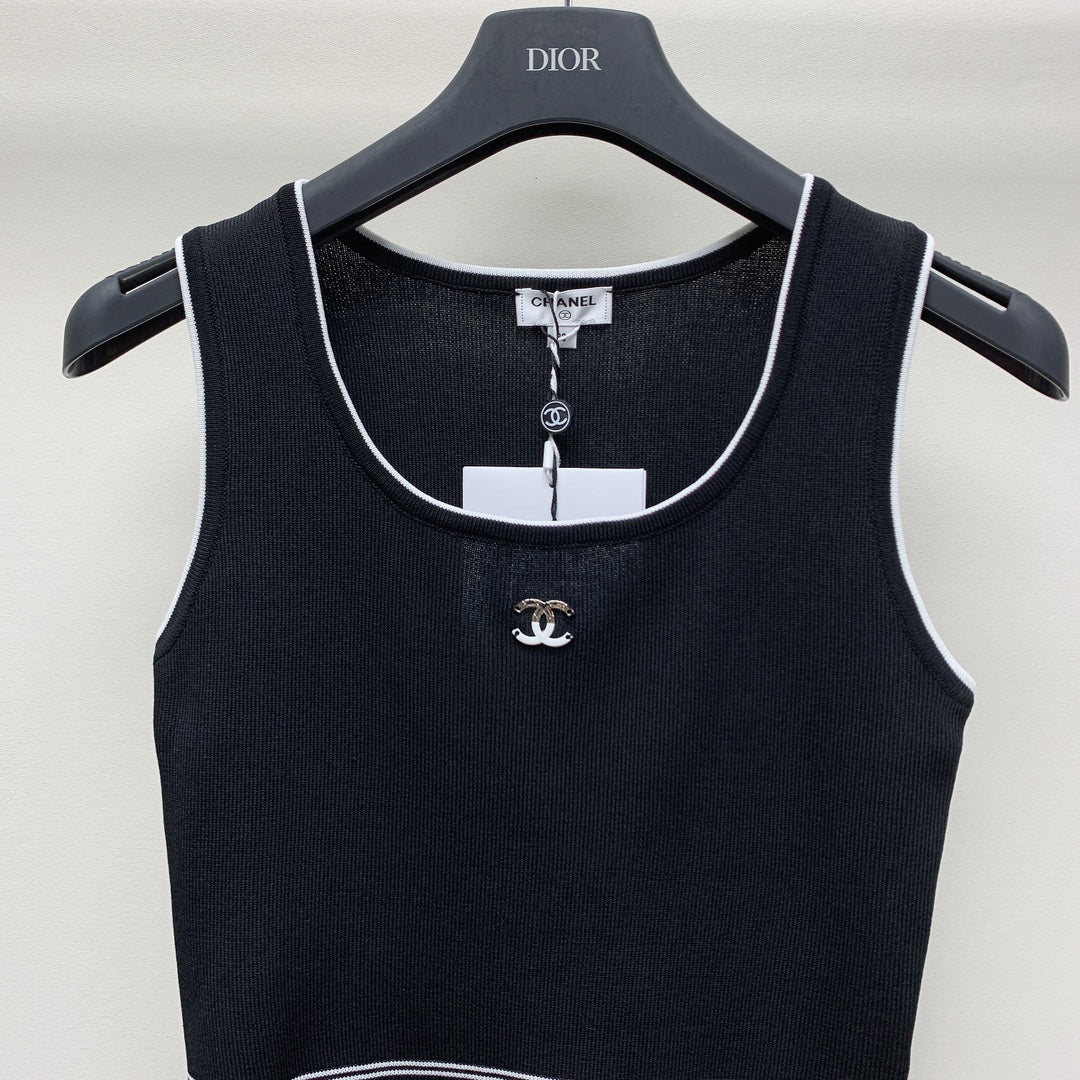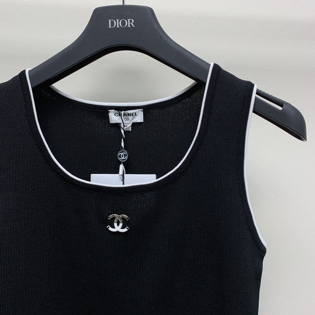 Gilet con logo ricamato in maglia a scollo tondo CC 25 nero 277577