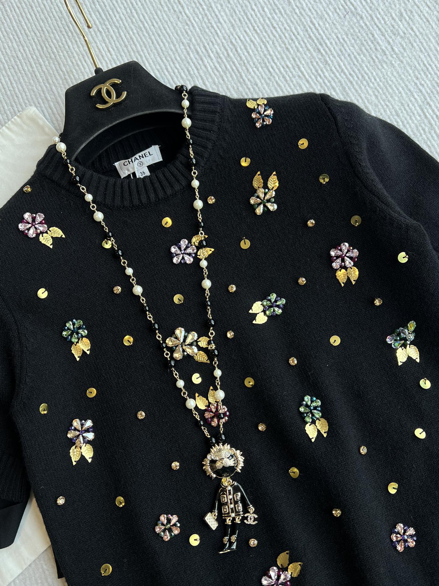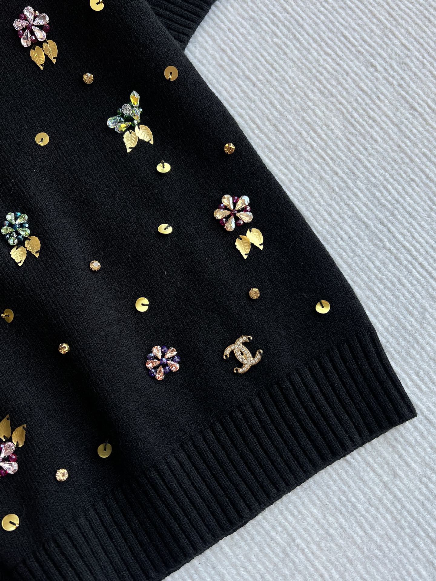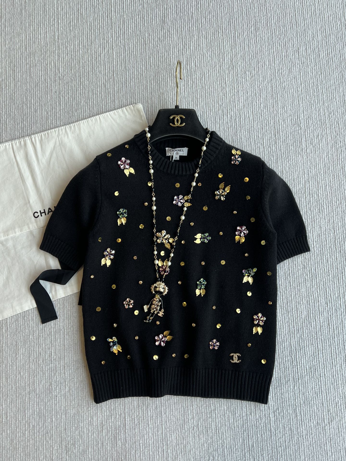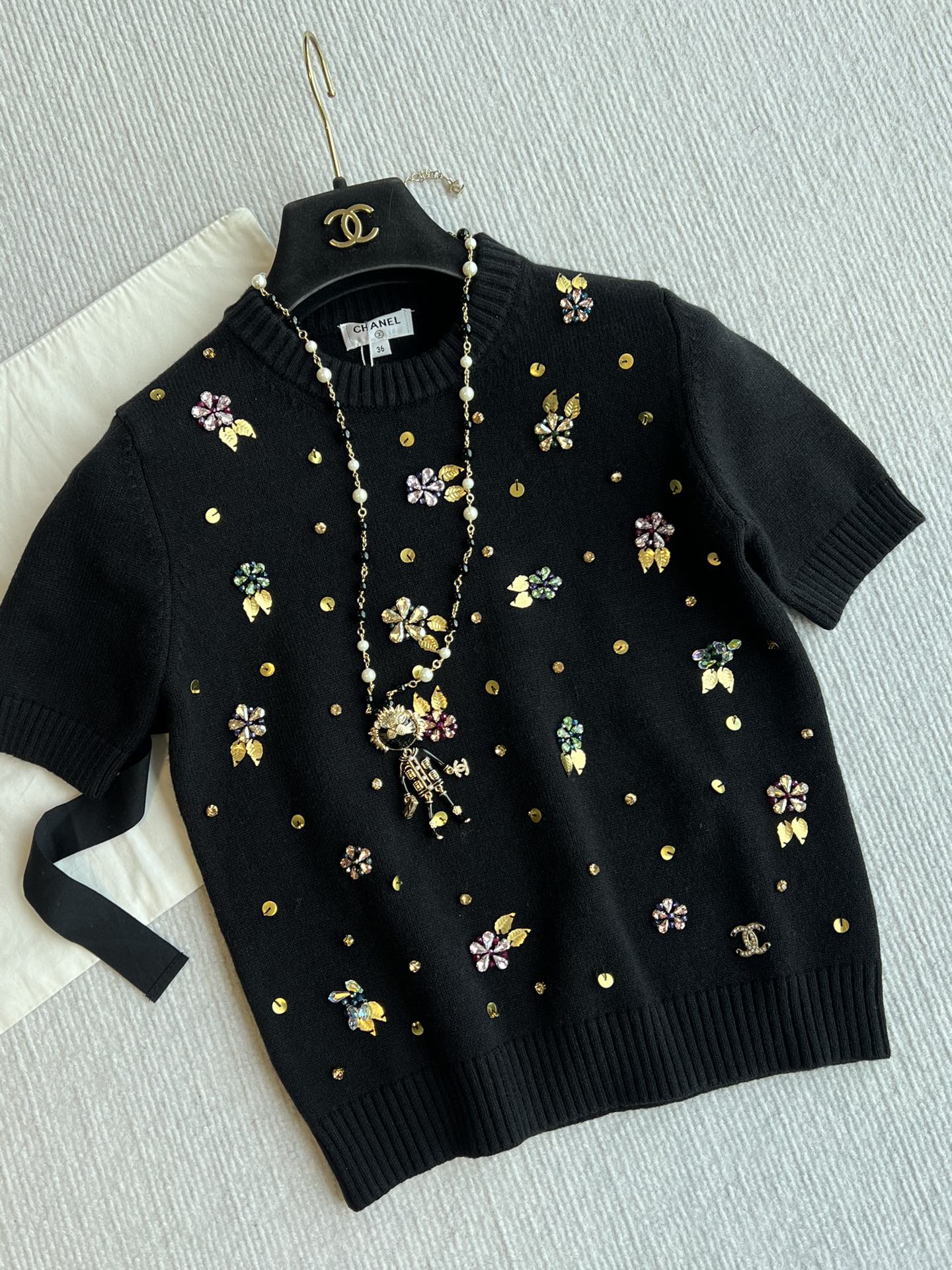 CC 25SS Maglia a maniche corte con fiori in lana nera 229493