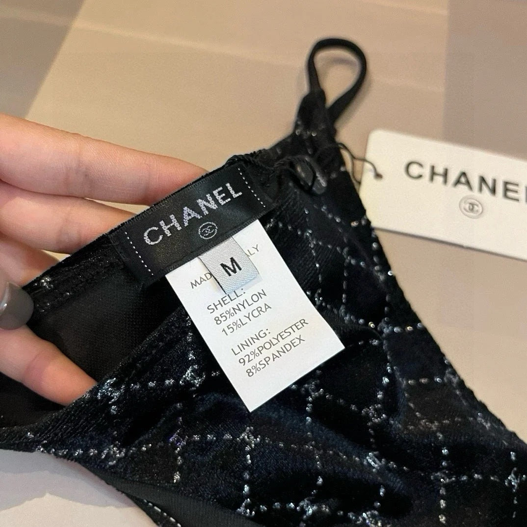 Completo costume da bagno bikini CC a quadri bianchi e neri 625992