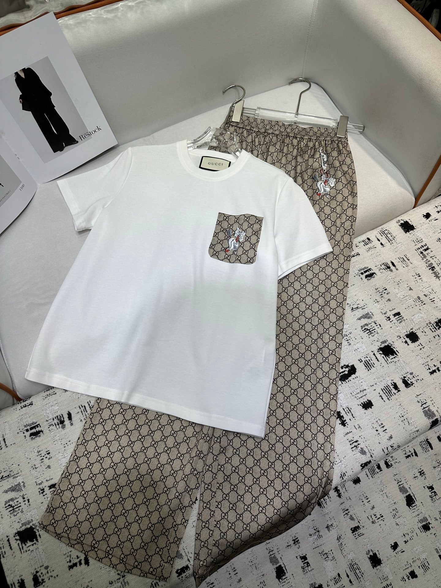 Gucci 2025 Pattern Set Bianco Marrone Fibra di Poliestere