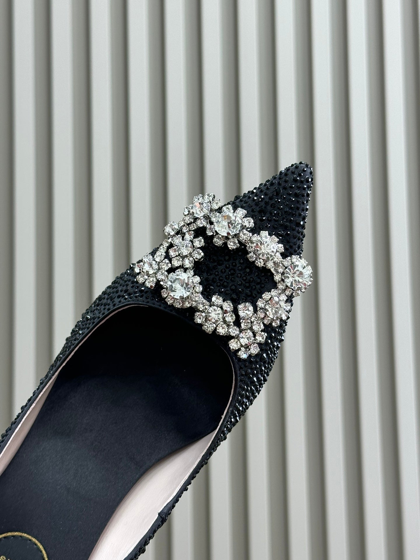 Décolleté con fibbia in strass a forma di fiore 85 in pelle nera con cristalli