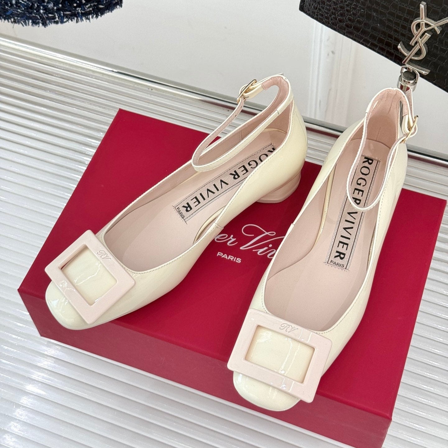 Viv Square Buckle Mary Jane in pelle di mucca fetale bianco latte 286707