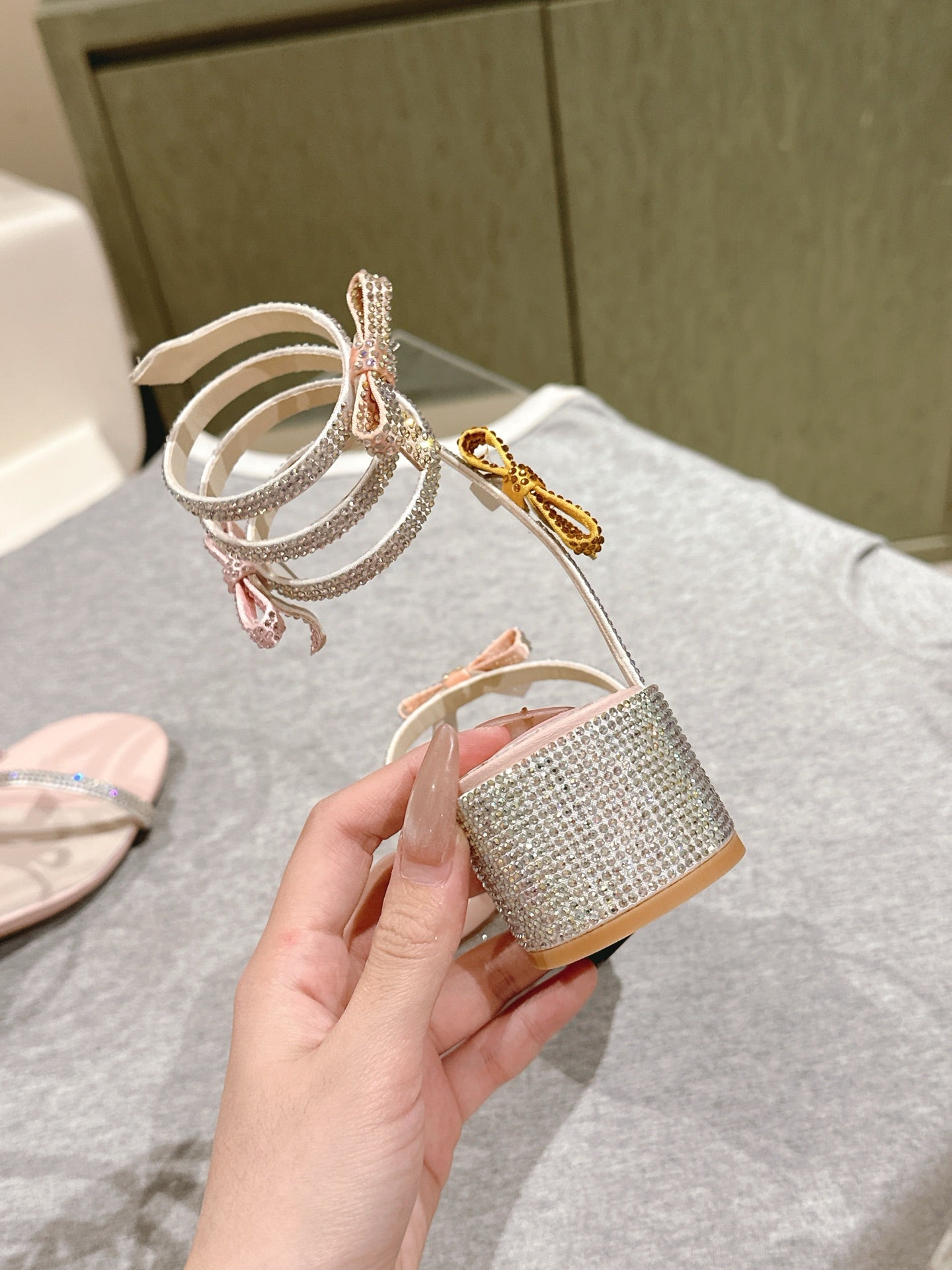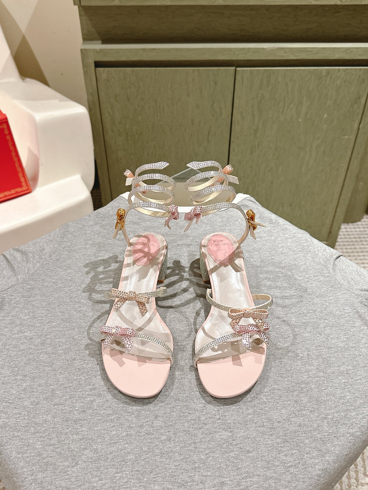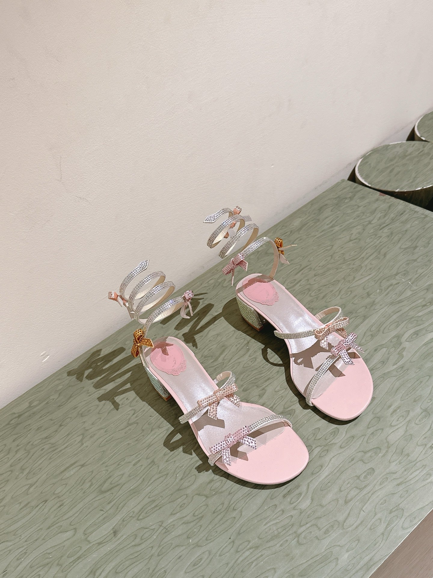 RC 25 Sandali con tacco alto a forma di serpente, fiocco in seta rosa con strass 268070