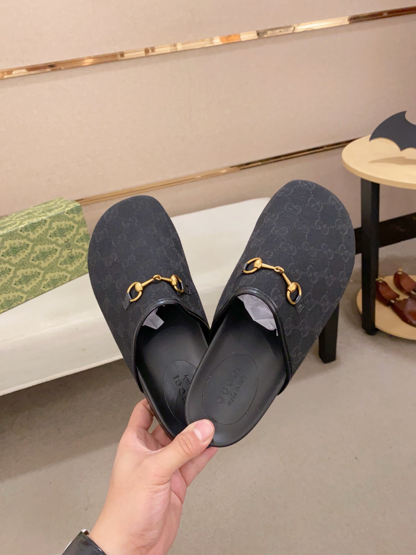 GG Mule da uomo in pelle di vacchetta nera 560362