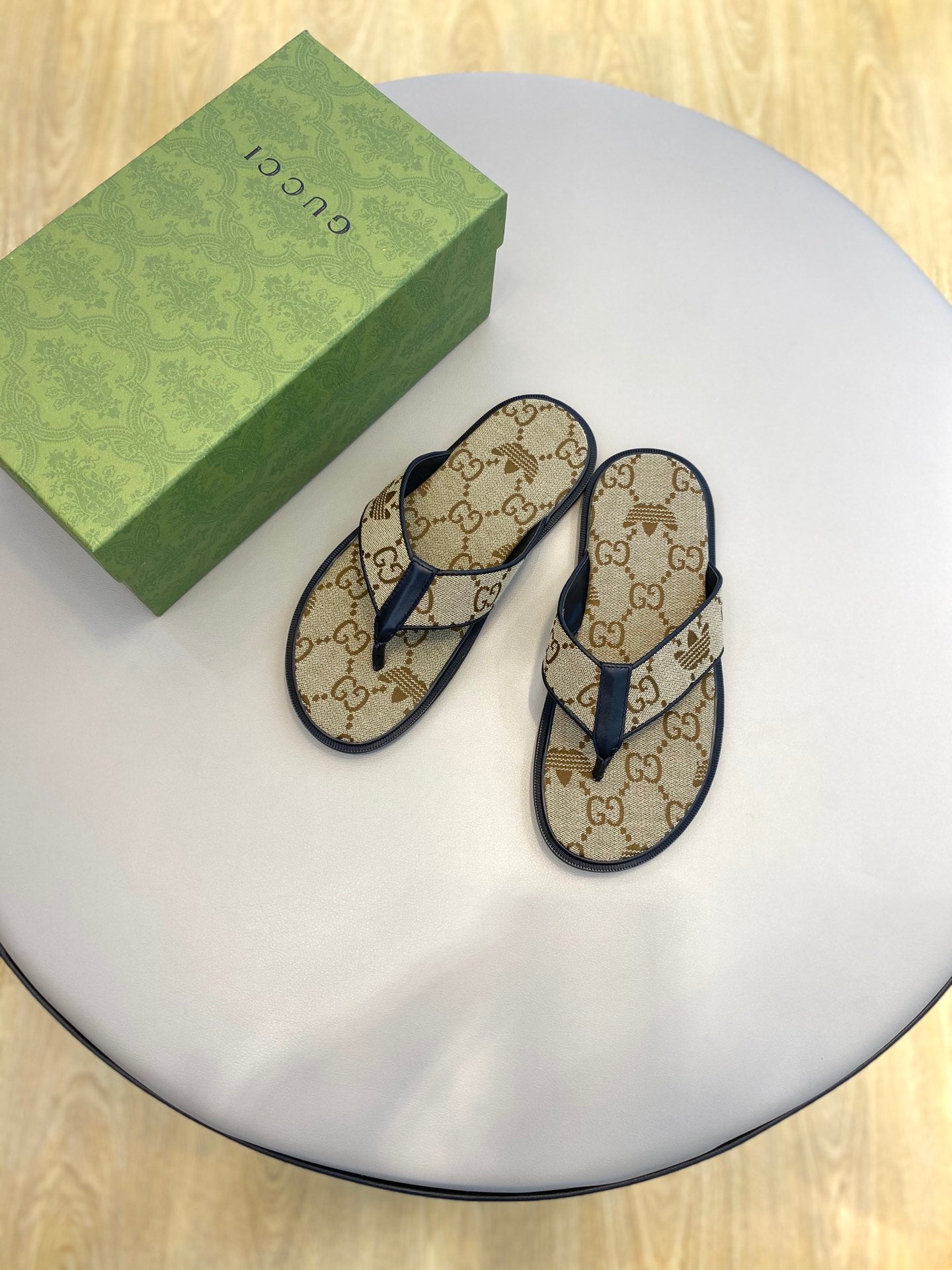 Sandali infradito da uomo GG x Adidas in tela marrone 558907
