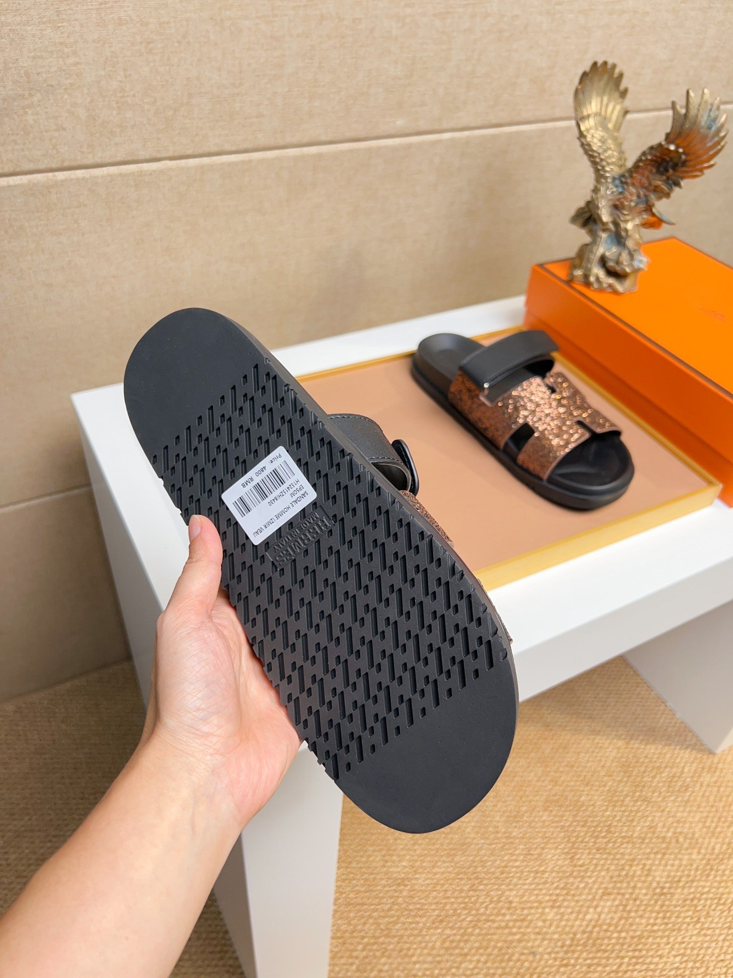 Sandali da uomo HM Chypre in pelle di vitello color rame metallizzato 735678