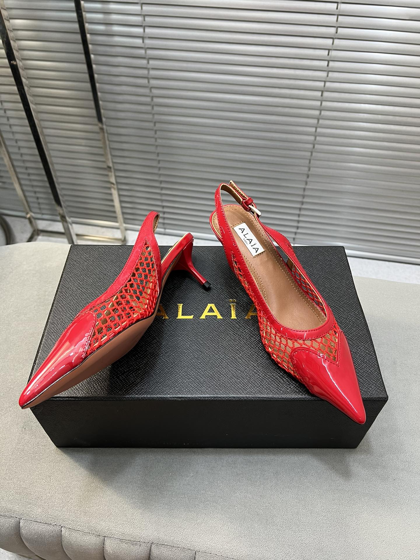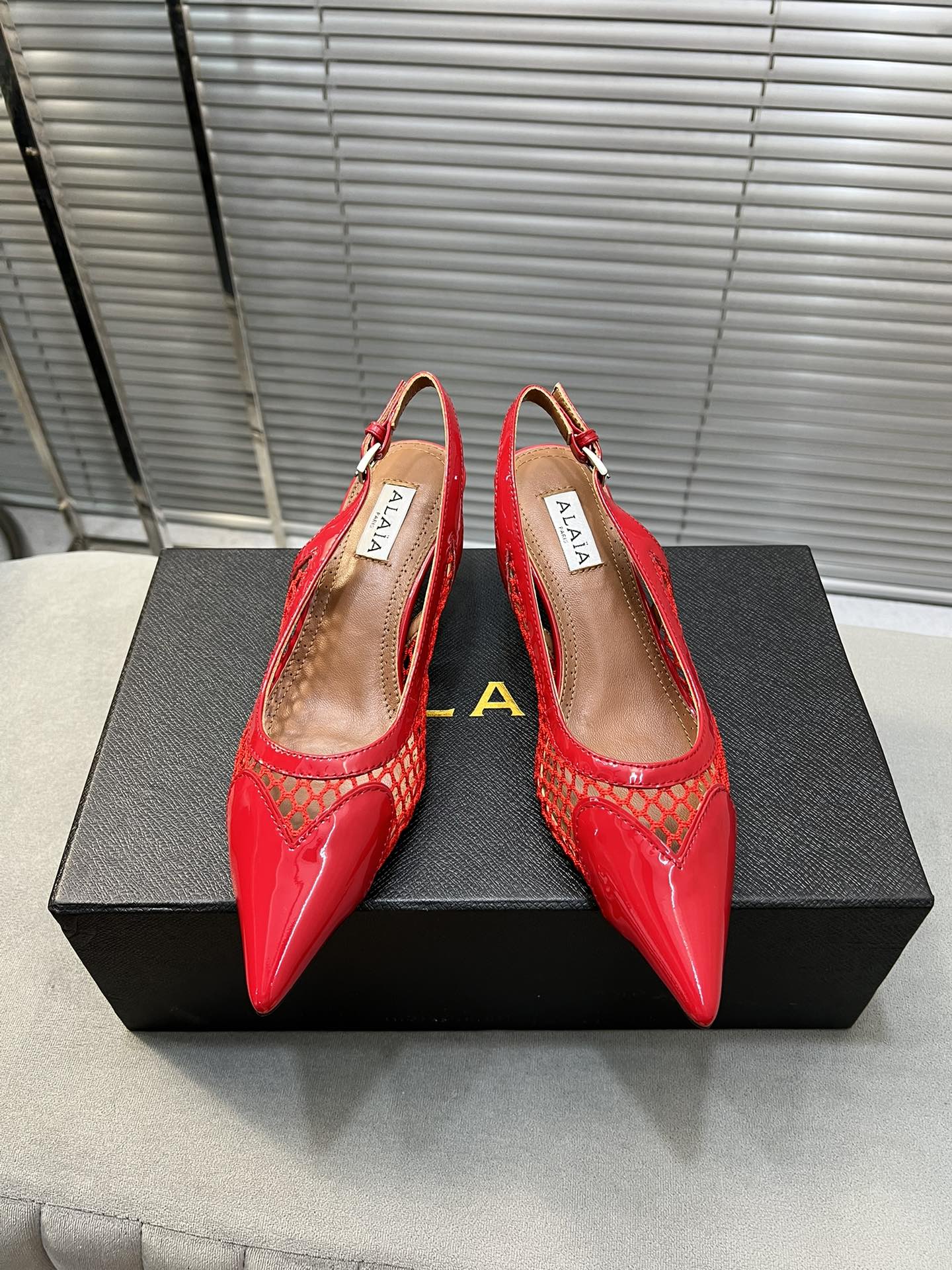 alaia high love slingback 55 fishnet pelle di agnello rossa