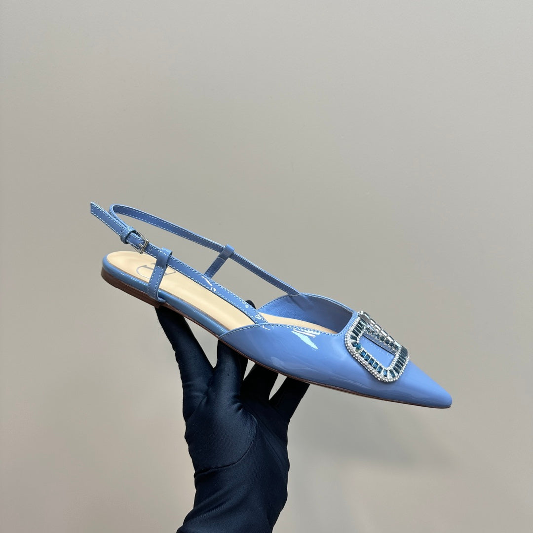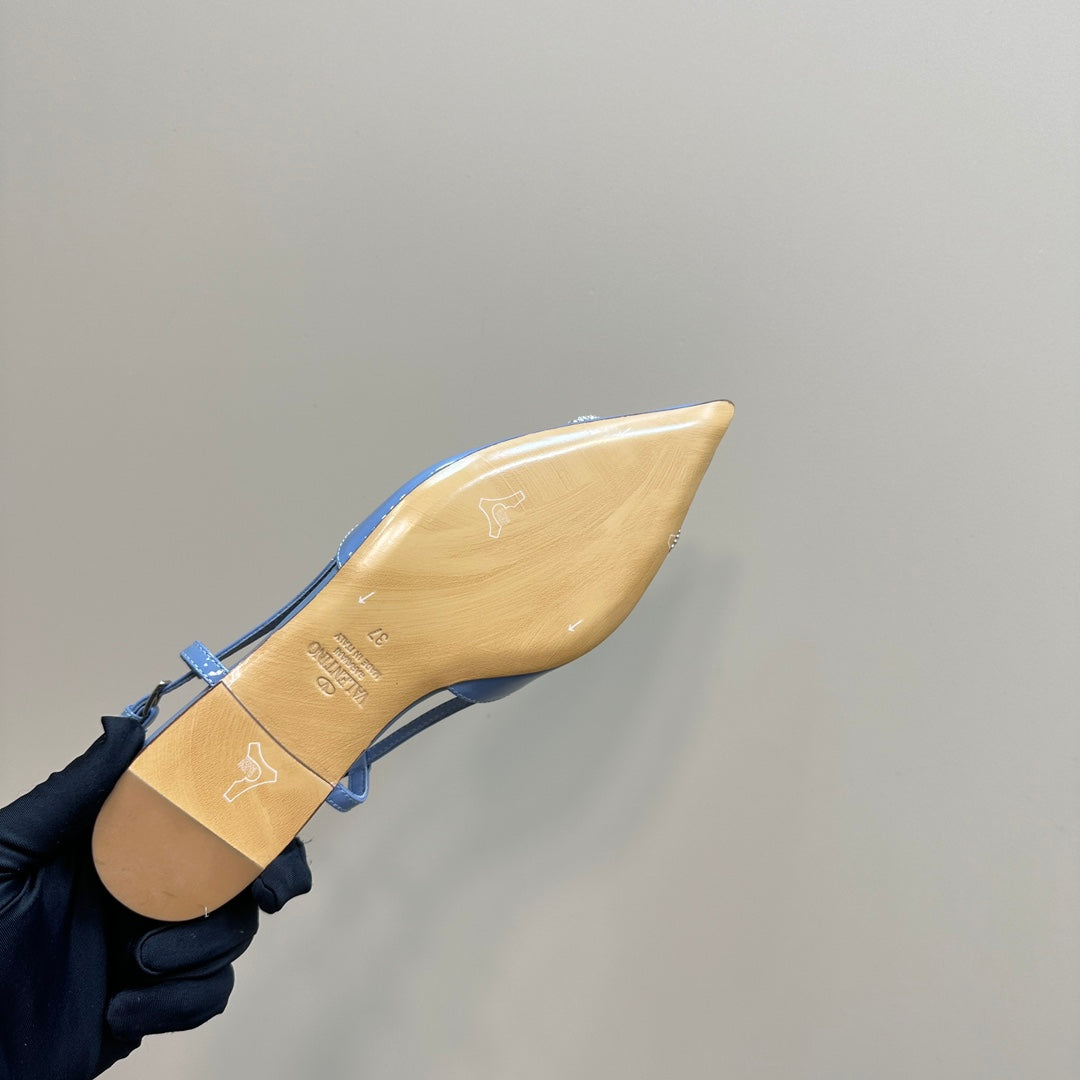 Décolleté con cinturino posteriore in pelle nappa laminata Vlogo Glow, colore blu mix beige 999033