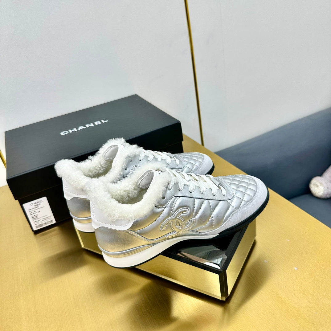 CC Low Sneaker Argento Lana Pelle di Vacchetta 413857