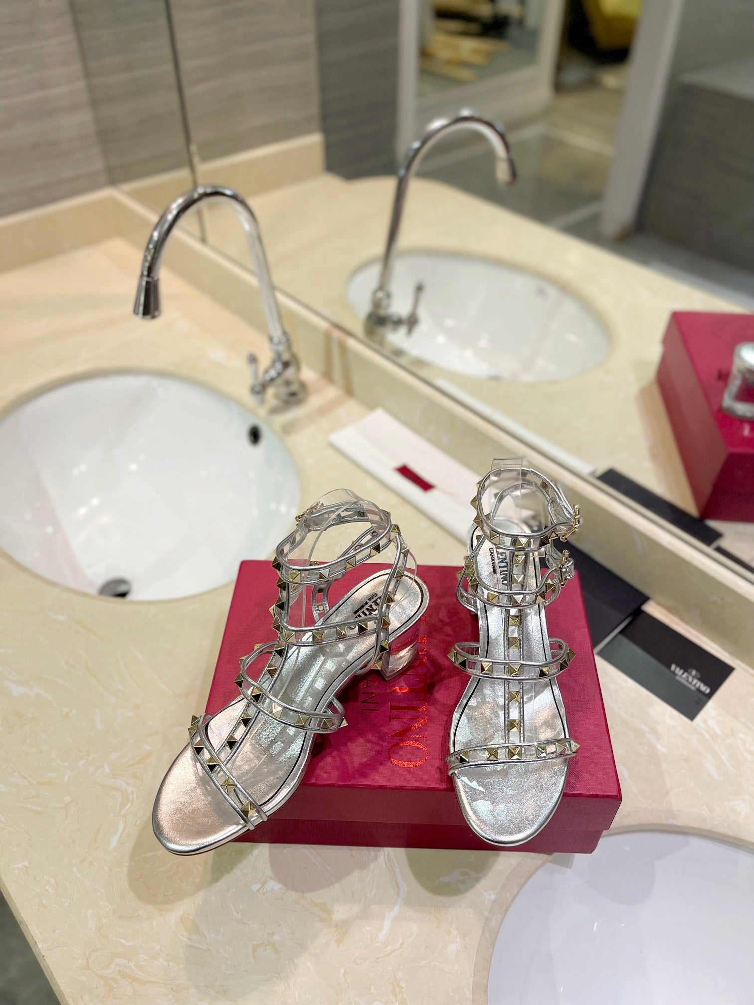 SANDALO ROCKSTUD CON CINTURINO IN VITELLO ARGENTO 60 MM