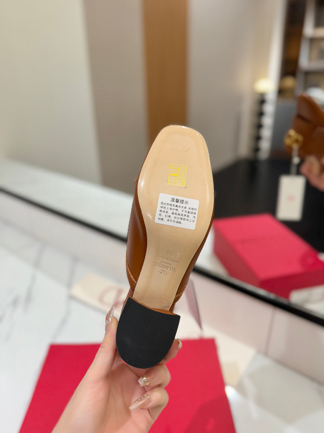 VT 2025 Signature Heeled Mule in pelle di vitello marrone 295076