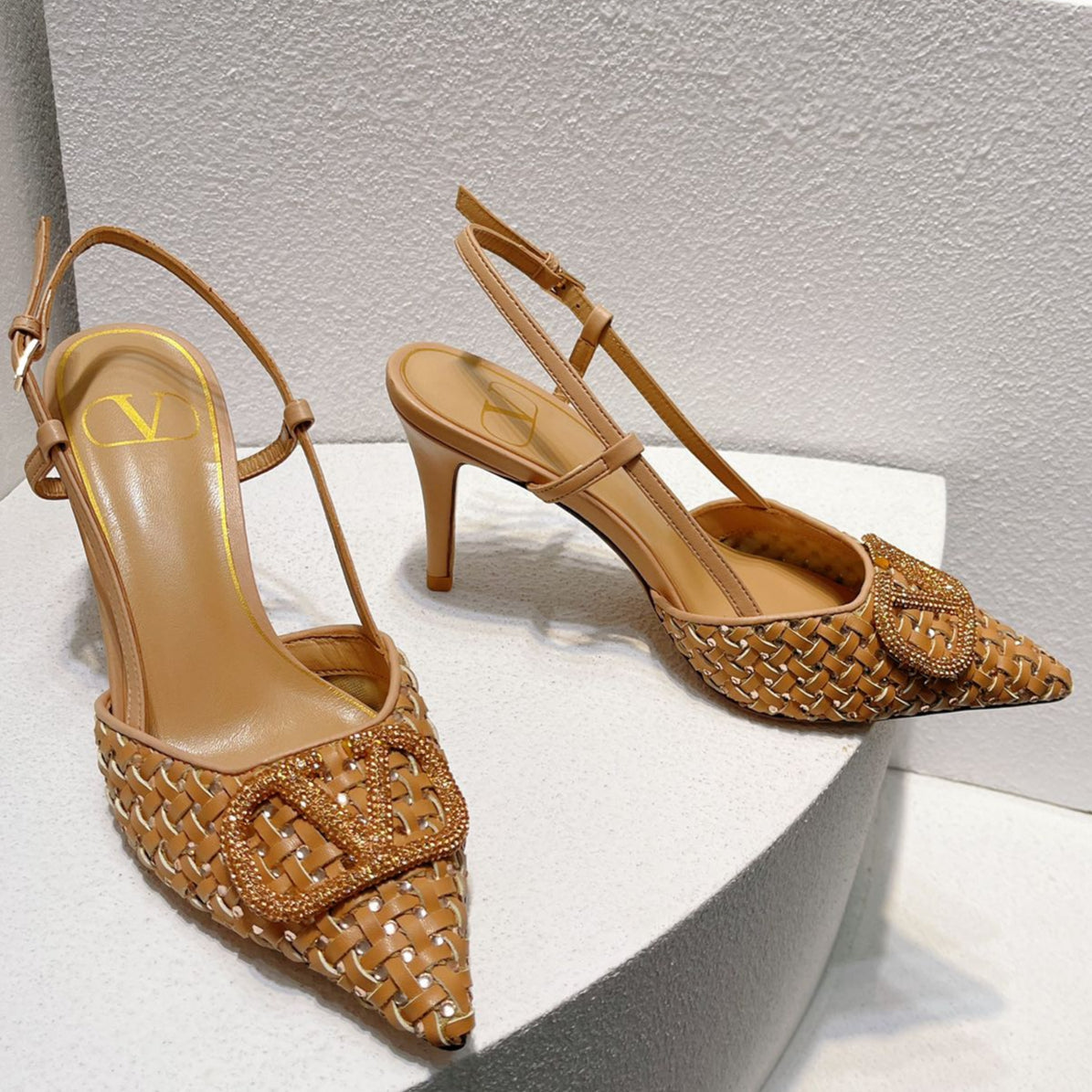 VT Slingback con tacco alto in pelle di pecora marrone Perù 292801