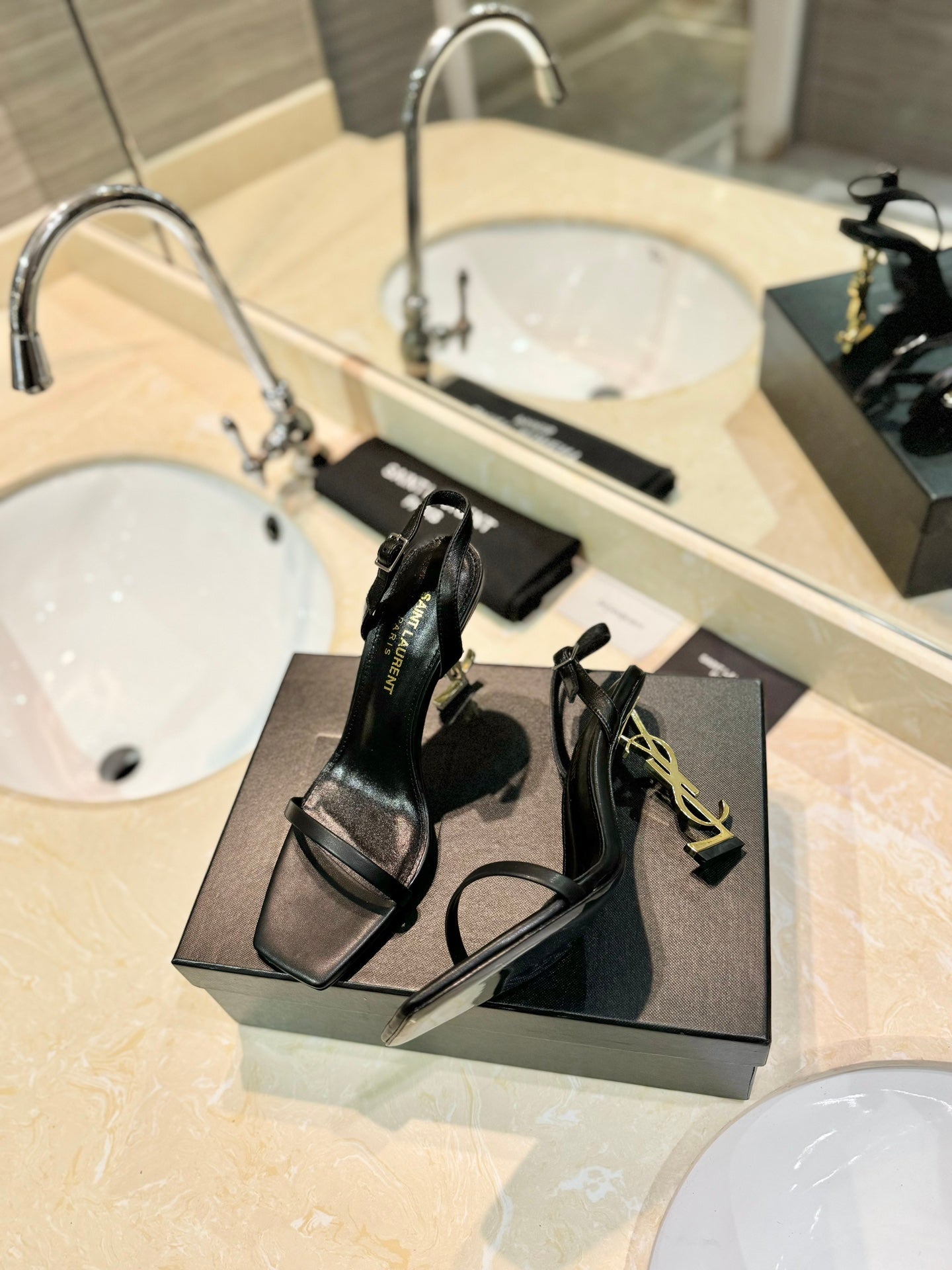 SANDALI SL OPYUM 80 NERO E ORO IN PELLE DI VITELLO