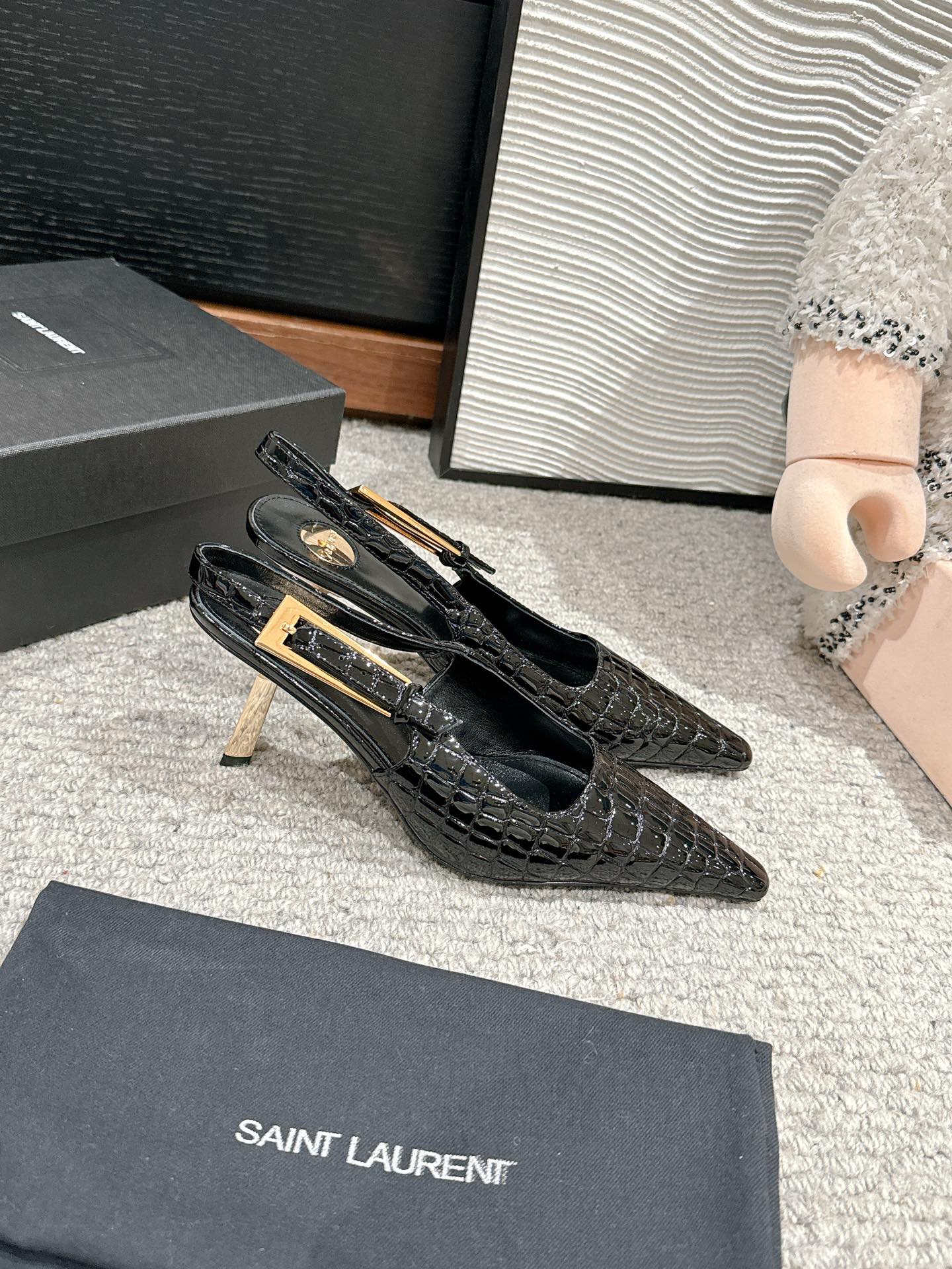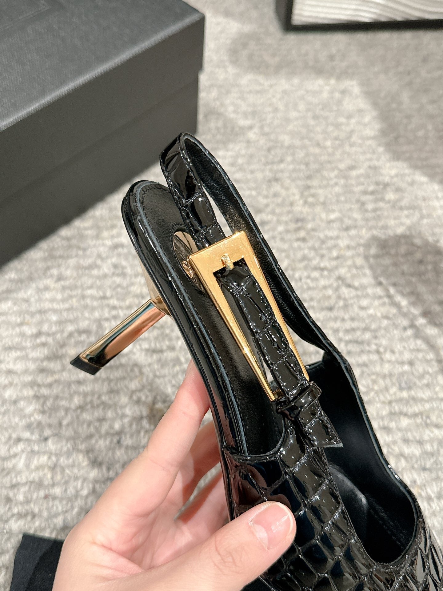 DÉCOLLETÉ LEE SLINGBACK MID IN PELLE DI VITELLO LUCIDA COLOR COCCODRILLO NERA