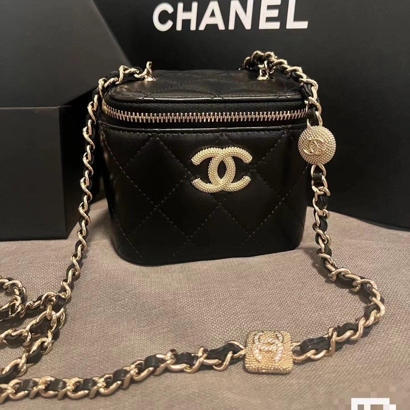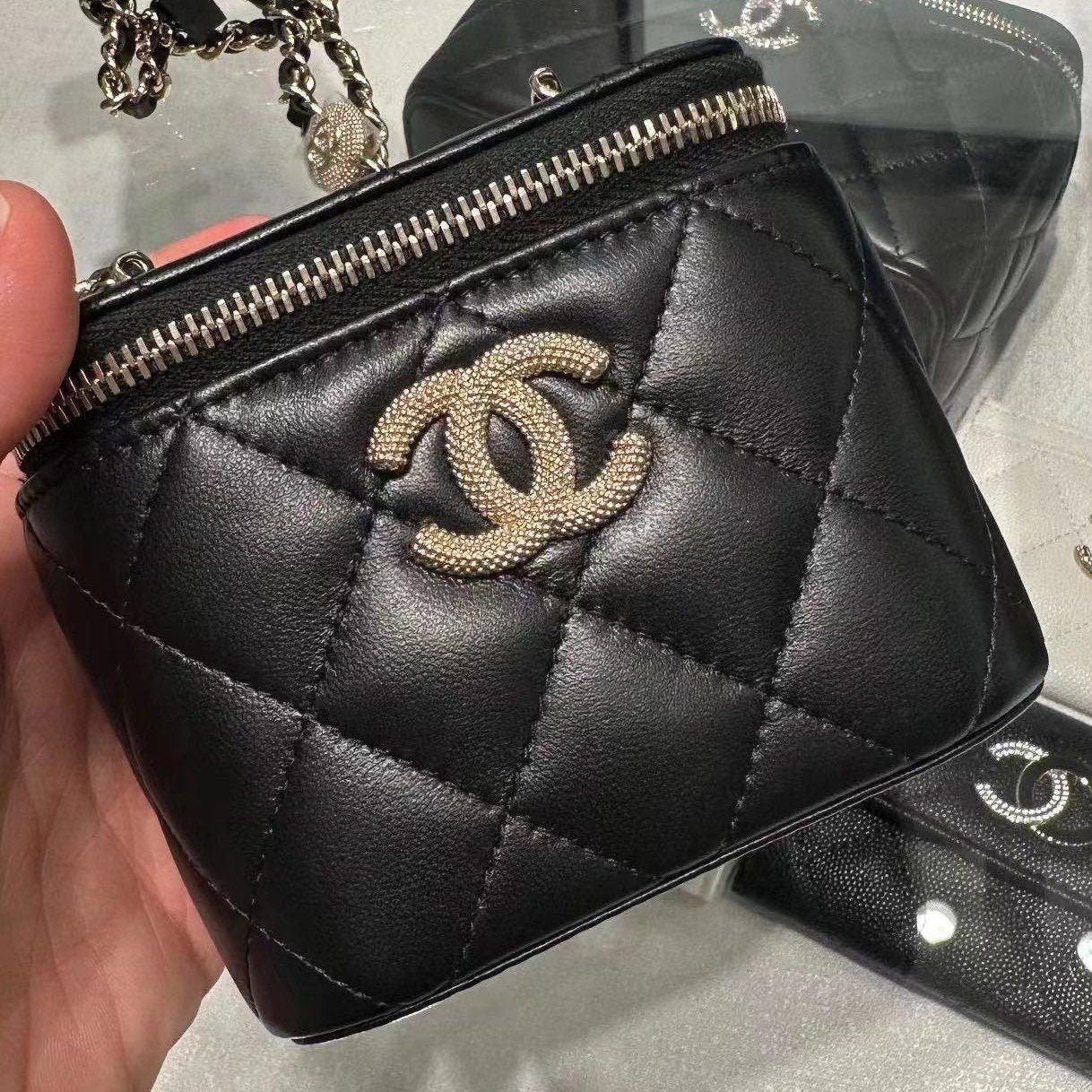PICCOLO VANITY CASE 11 IN PELLE DI VITELLO NERA CON FERRAMENTA ORO