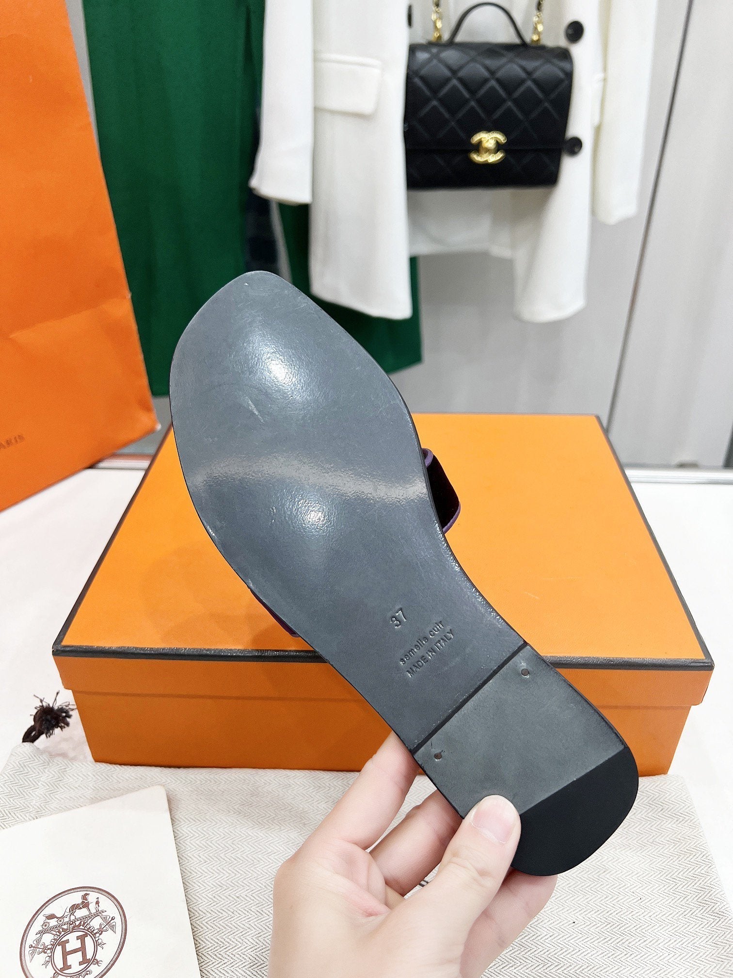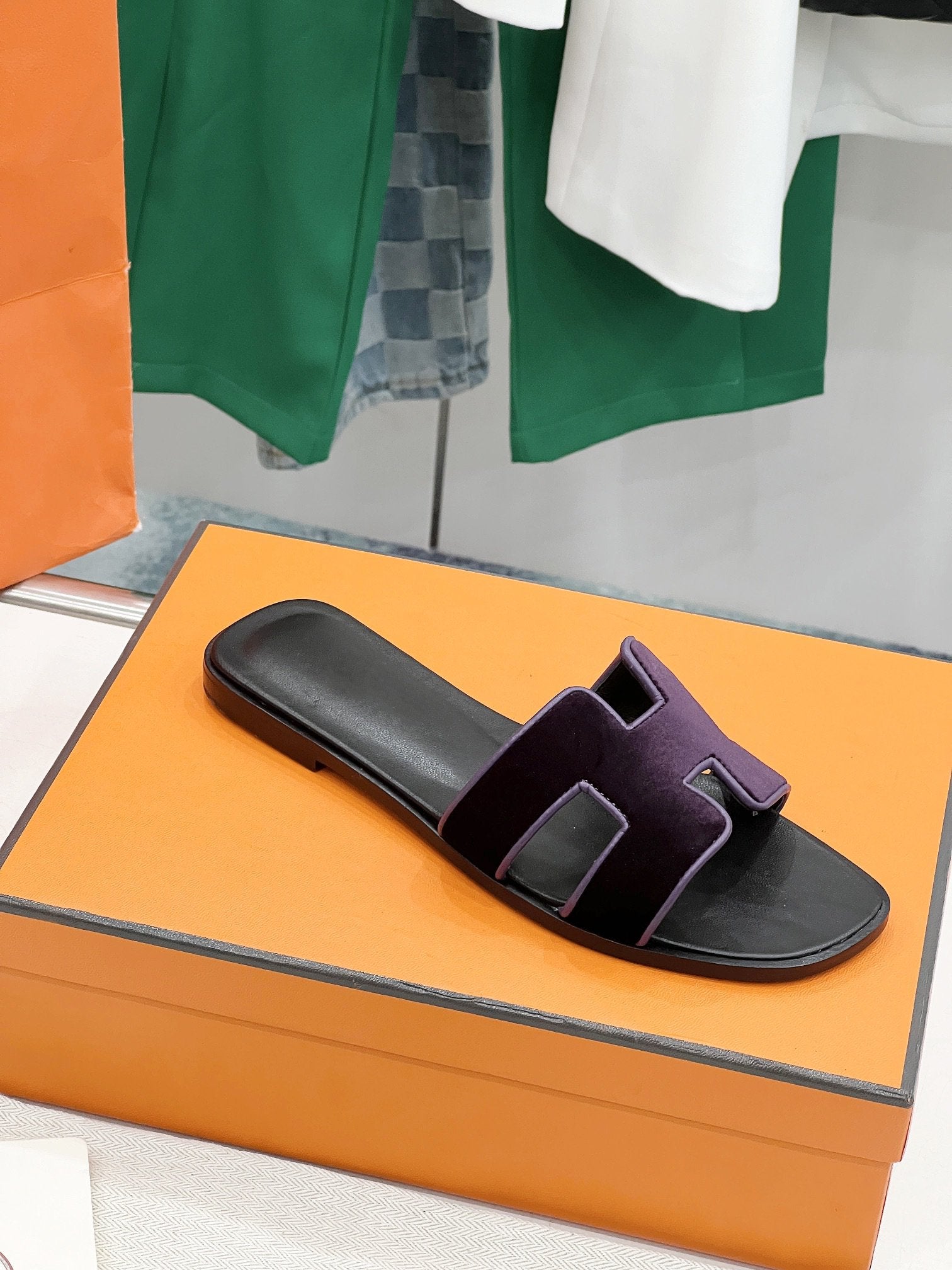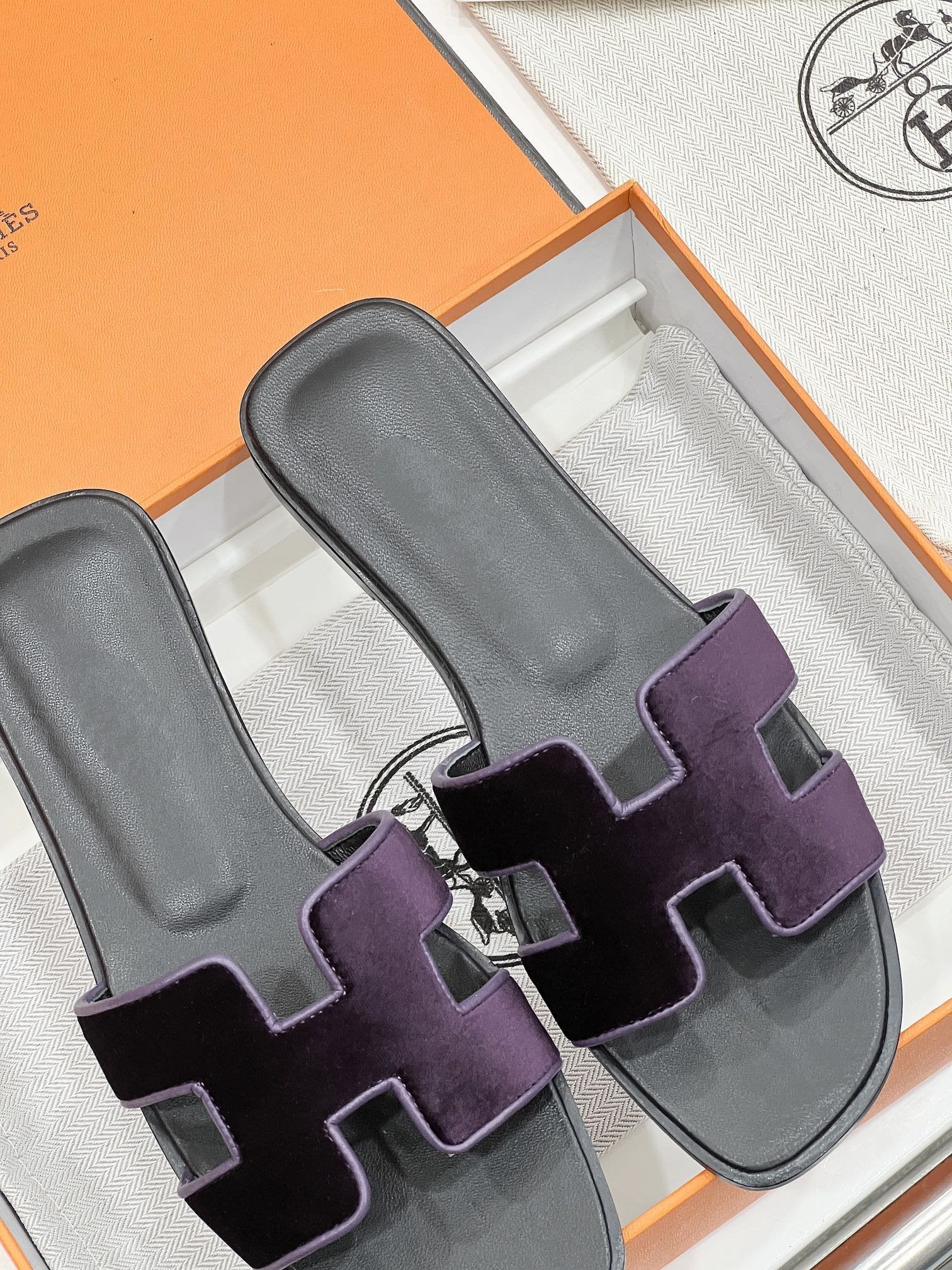 • Material: Sandal in velvet goatskin with iconic "H" cut-out.