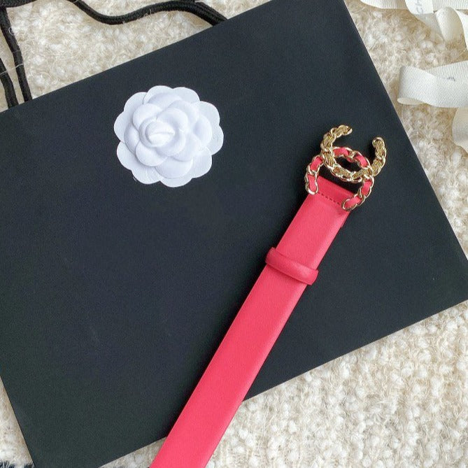 CC WOMEN'S BELT 3.0CM BUCKLE MULTICOLOR LEATHER DARK PINK