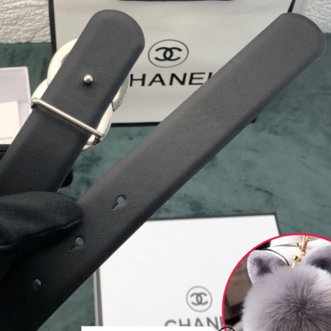 CC WOMEN'S BELT 3.0CM LEATHER BLACK BUCKLE SILVER CONVEX