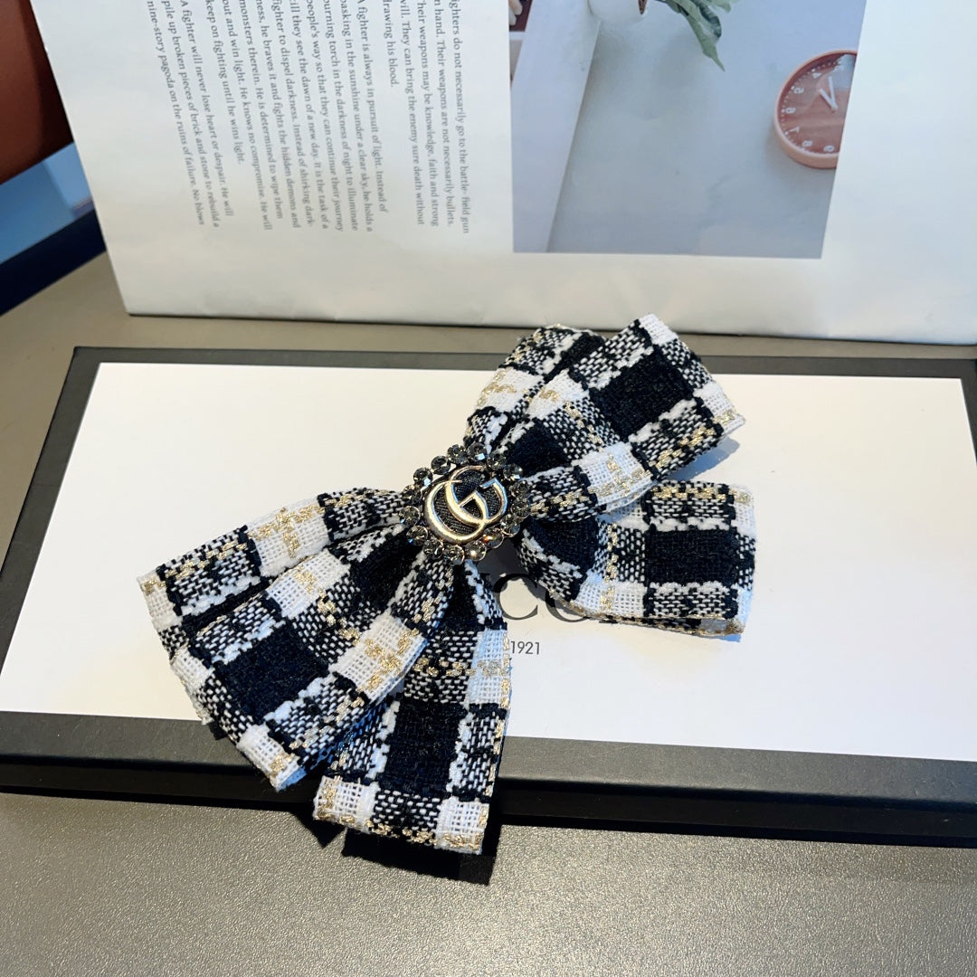 RETRO BOW HAIR CLIP IN BLACK MIX WHITE TWEED 432763