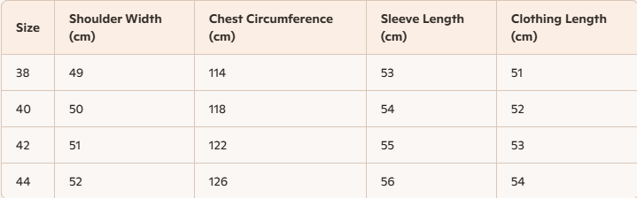 • Size: 38, 40, 42, 44