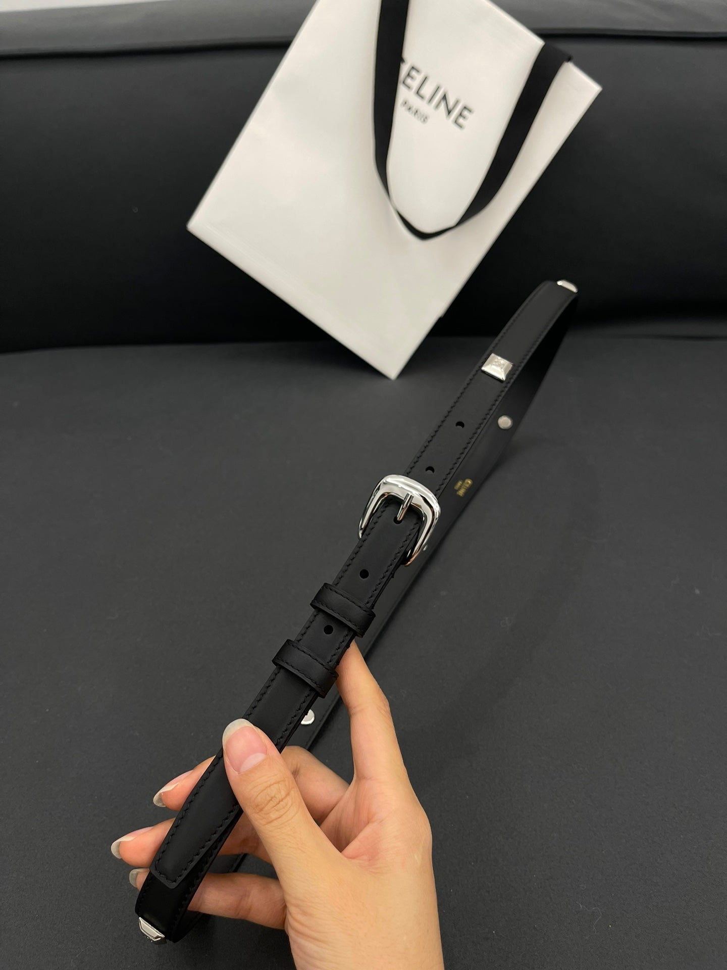 CL SMALL 18 MM TRIOMPHE BELT IN TAURILLON BLACK LEATHER SILVER HARDWARE