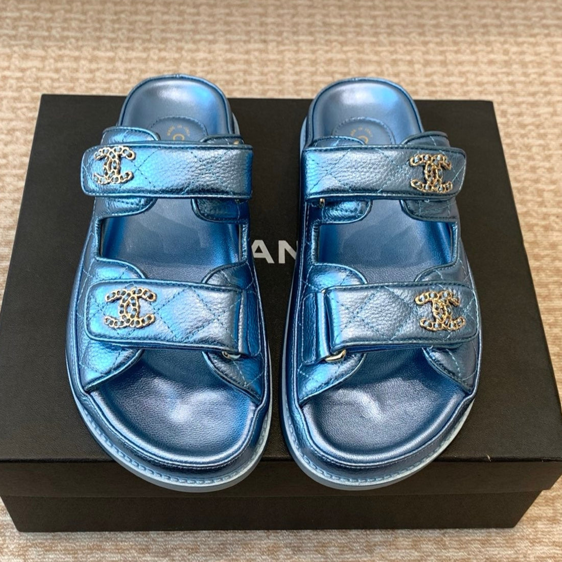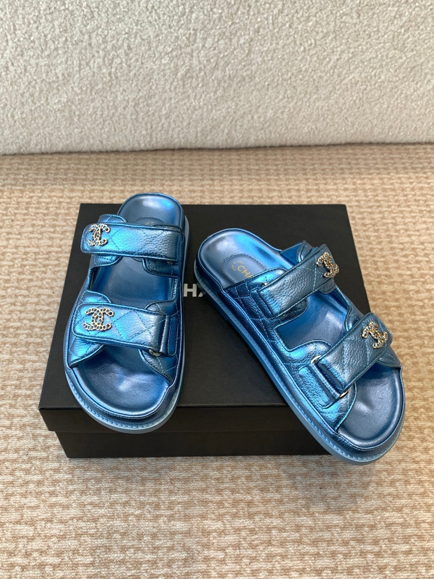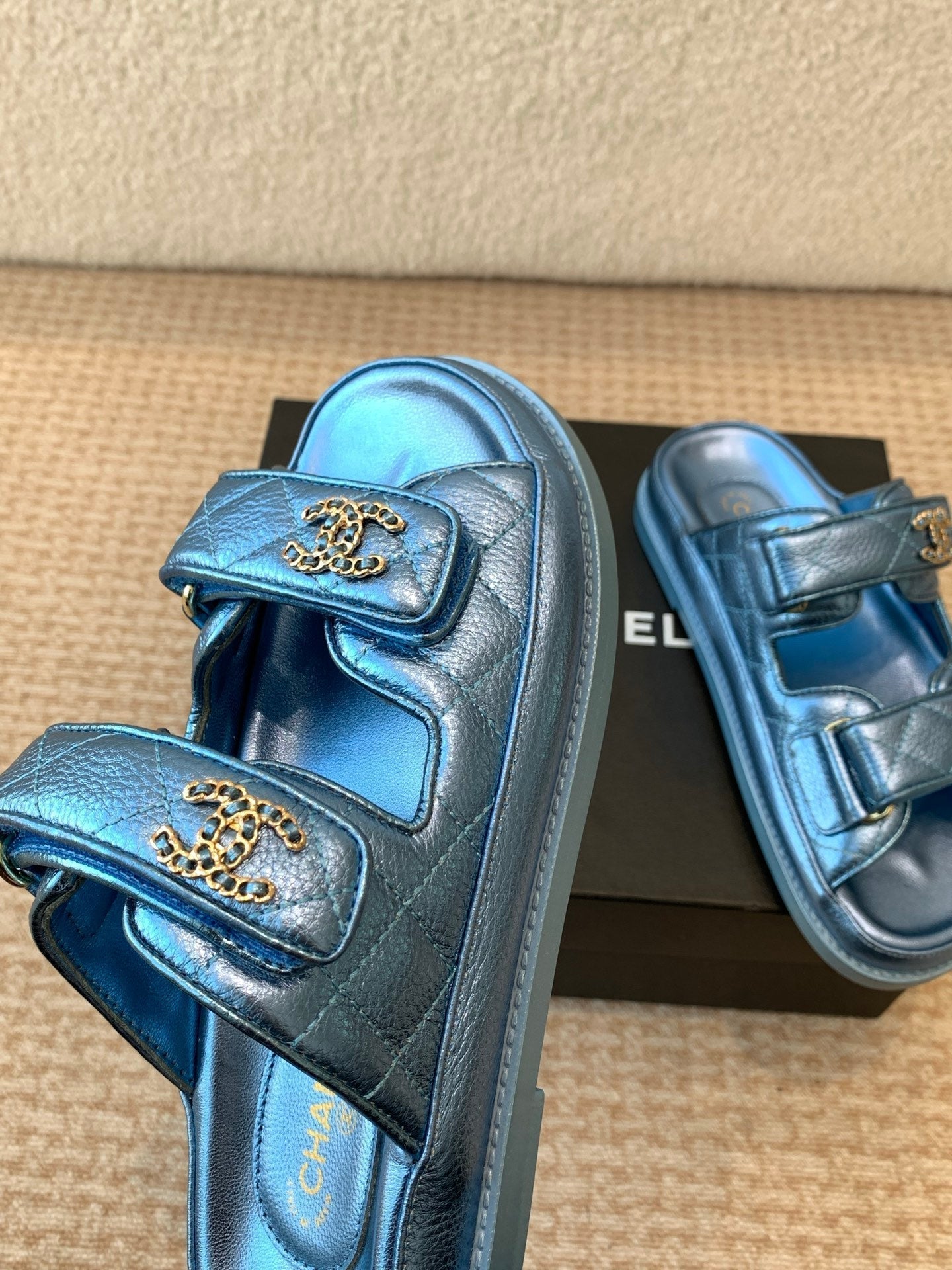 DAD SANDAL IN TEAL BLUE SHEEPSKIN MULE