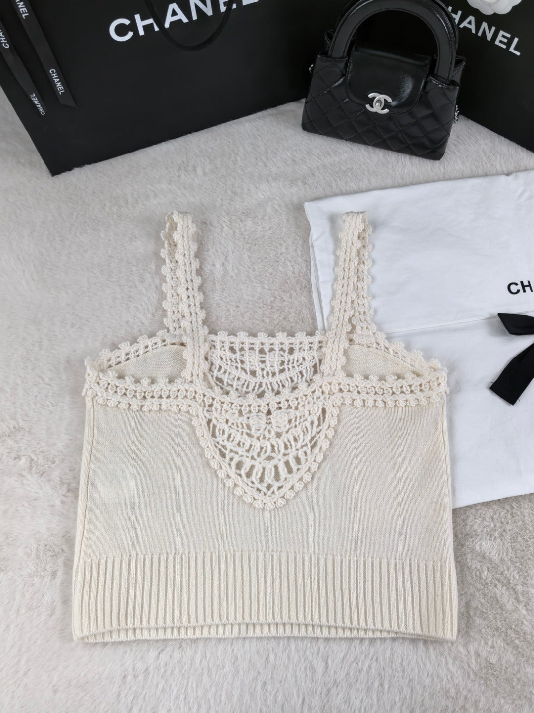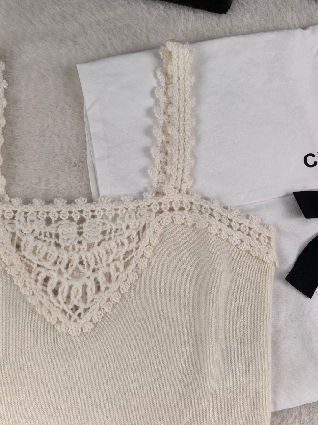 CC Small Crochet Flower Hollow Cream Alpaca Sling