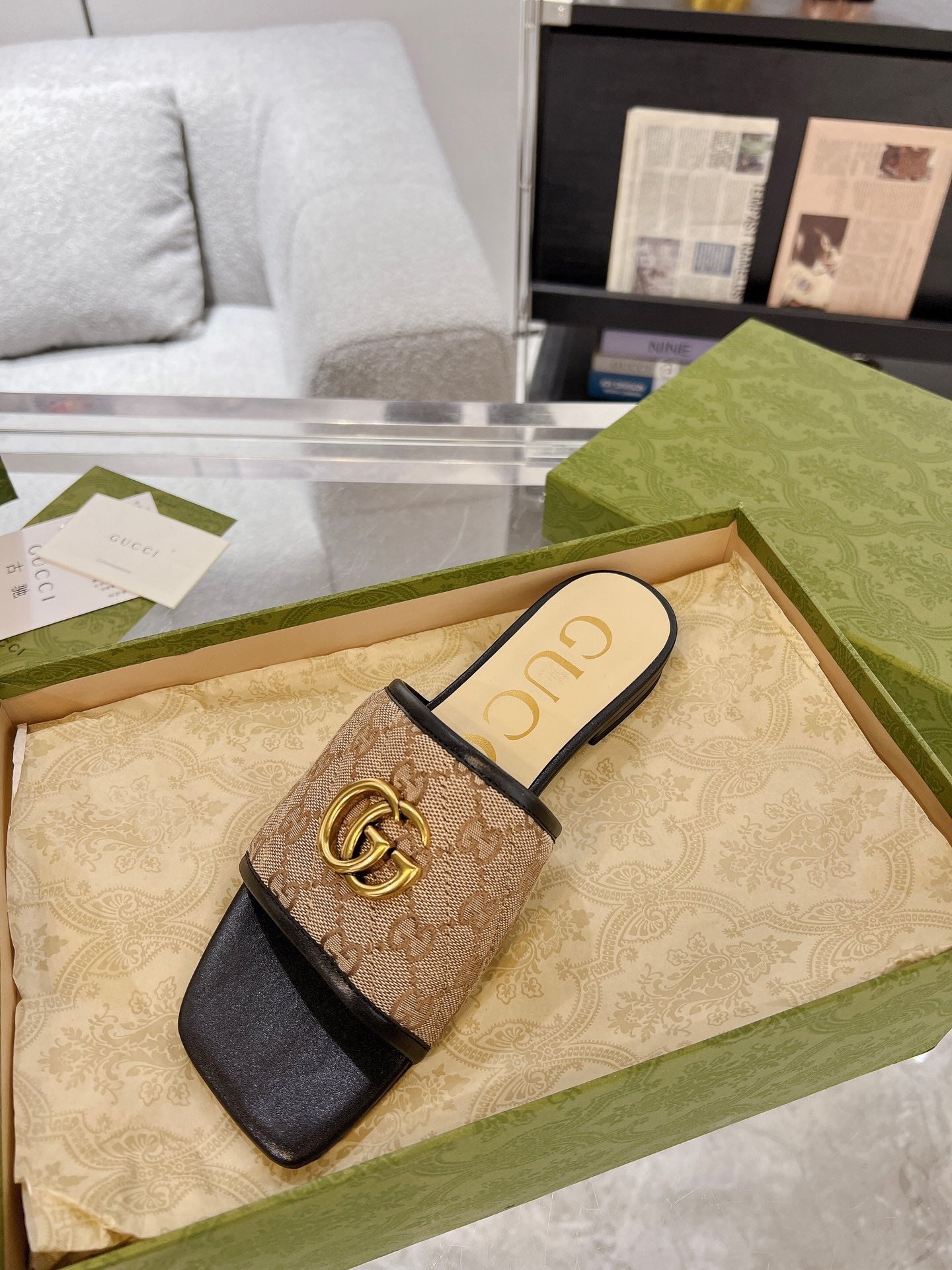 GG EXCLUSIVE SLIDE SANDAL BLACK AND BROWN FABRIC