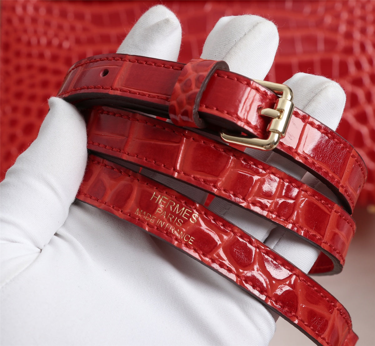 HM KELLY BAG 28 RED CROCODILE EMBOSSED CALFSKIN