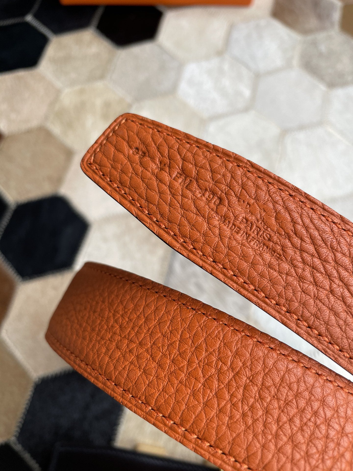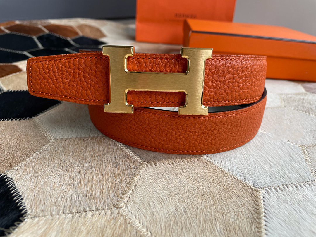 H CONTANCE BELT 32MM GOLD BUCKLE BLACK ORANGE LEATHER