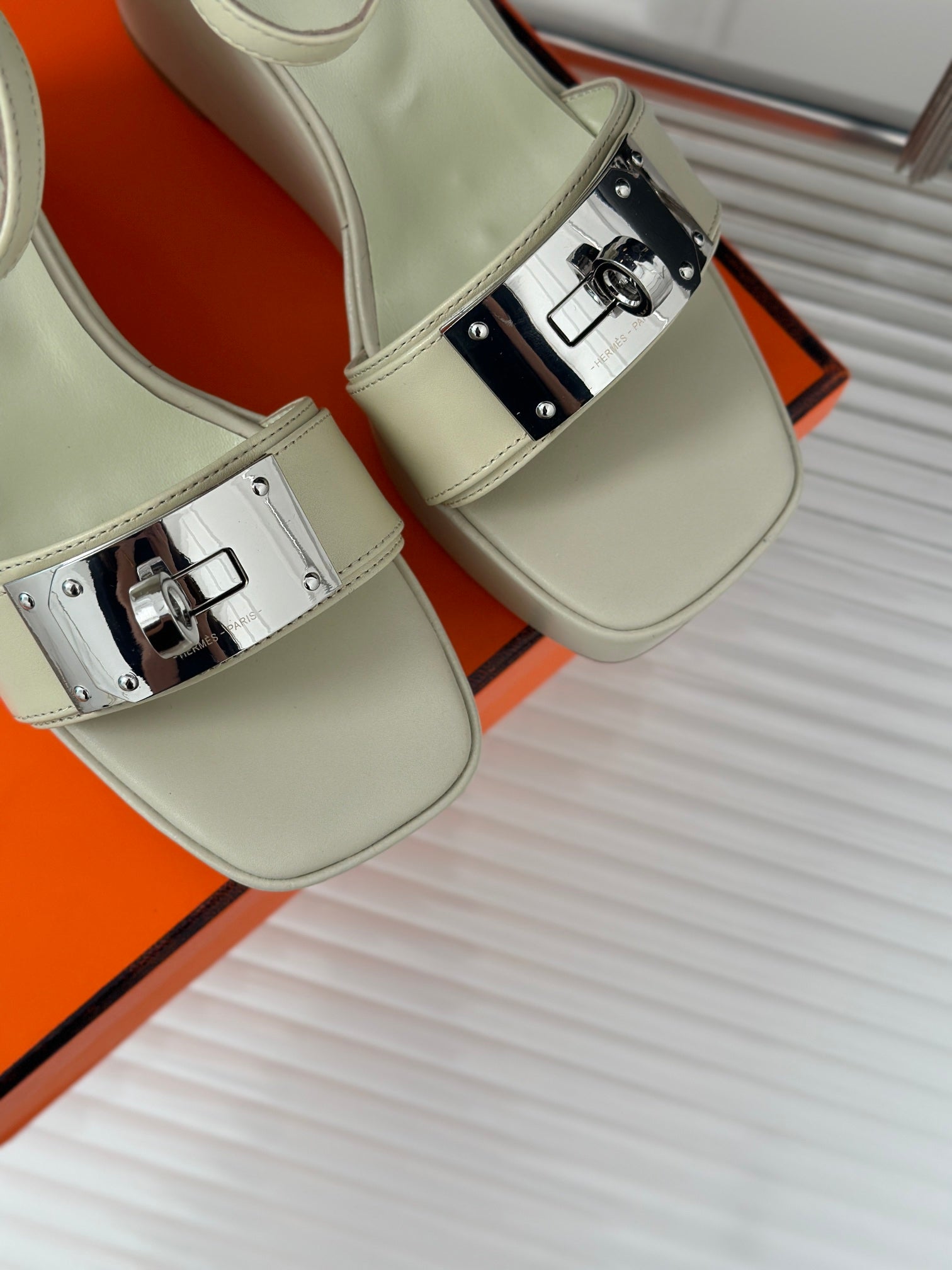 WEDGES SANDALS WHITE LAMBSKIN