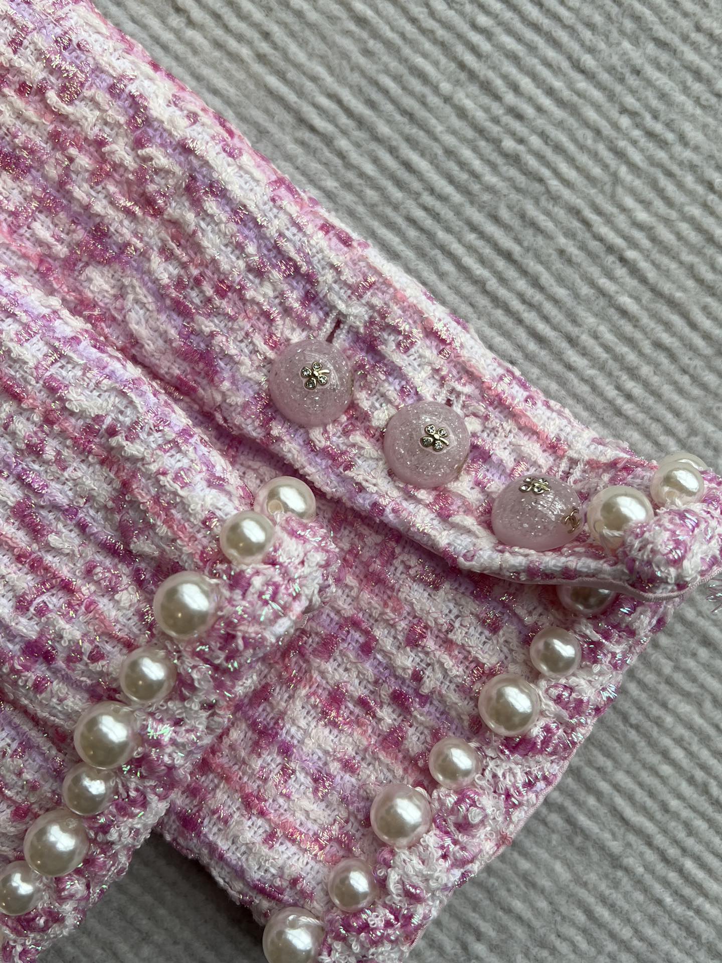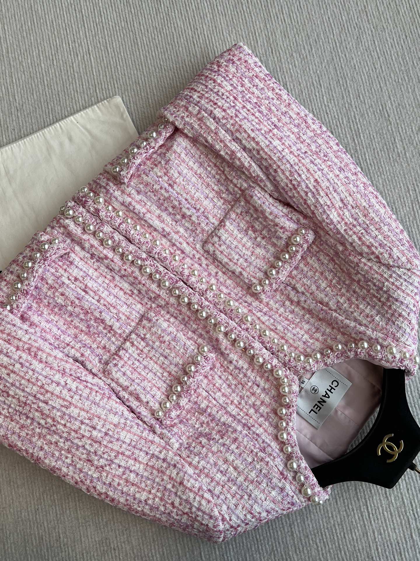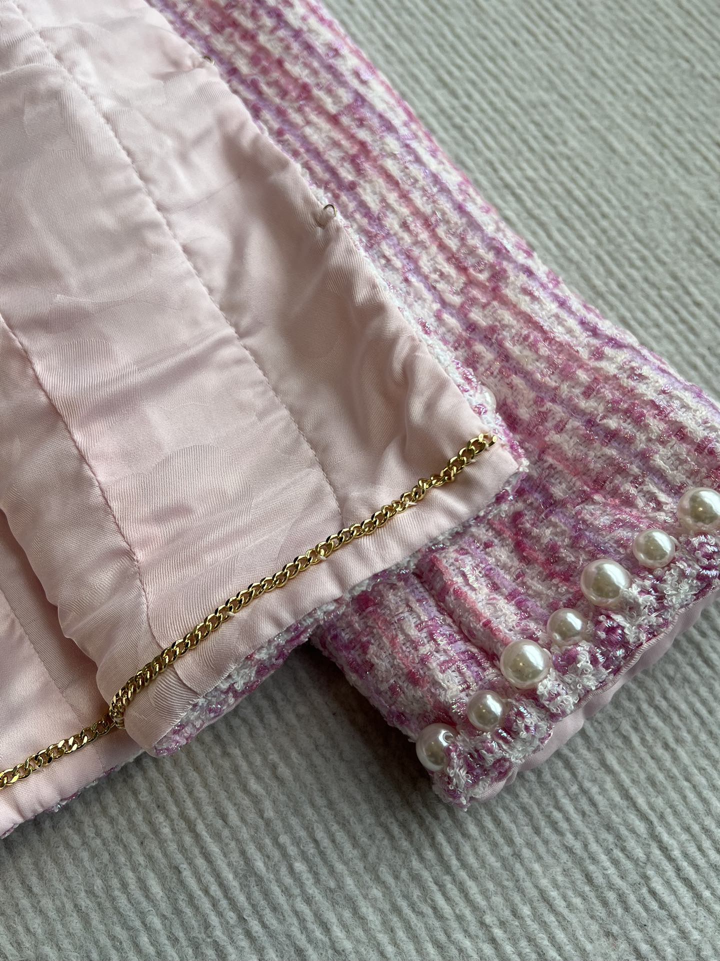 Chanel 25P Cardigan Pink Tweed With Pearl 235893